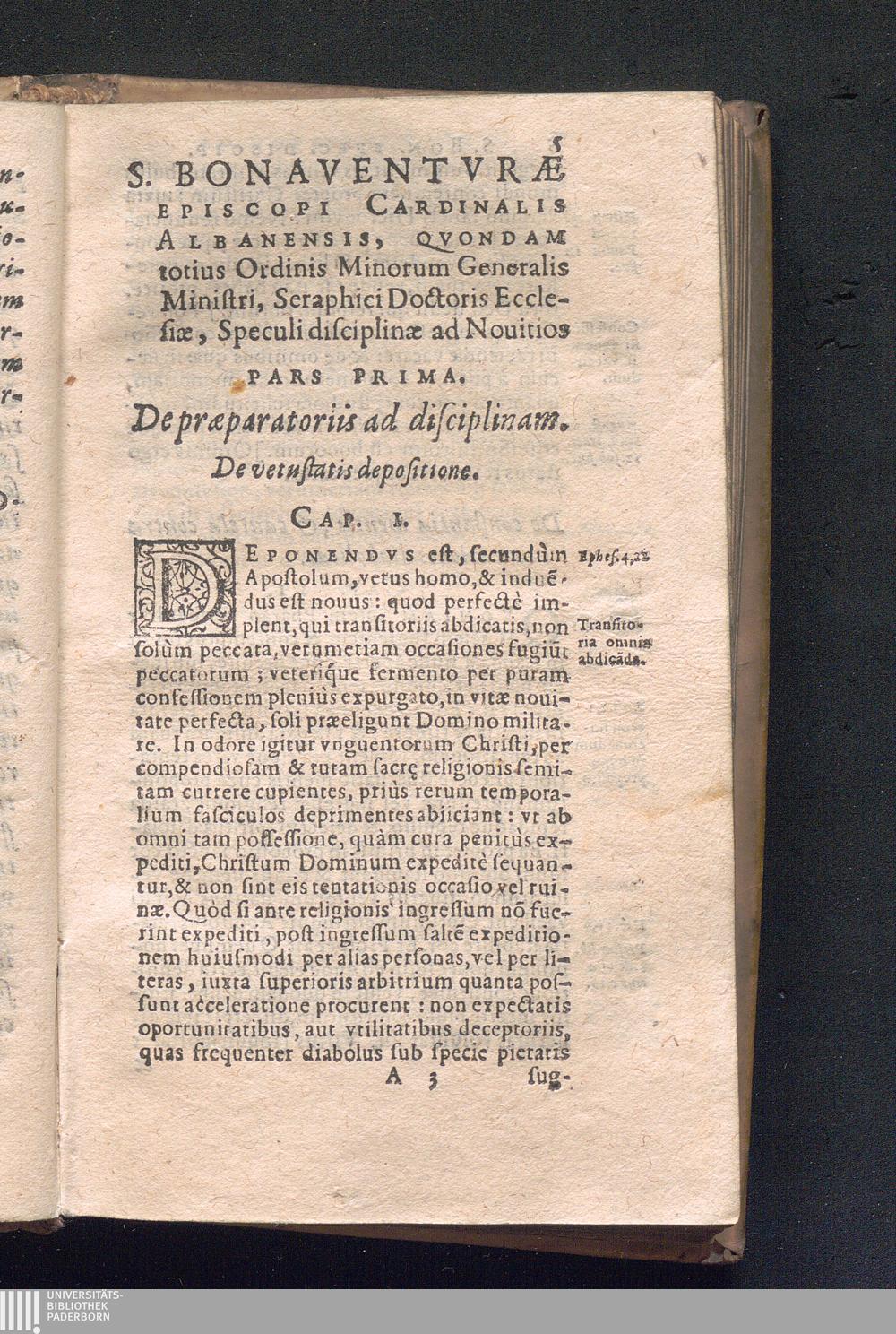 Sancti Bonaventvræ Episcopi Cardinalis Albanensis, Seraph. Doctoris Ecclesiæ, Speculum Disciplinæ, Et Profectus Religiosorum: Libelli ad pietatem vtilissimi / Operâ F. Henrici Sedvlii Cliuiensis, Instituti D. Francisci de Obseruantia Guardiani Antvverp. diligenter emendati