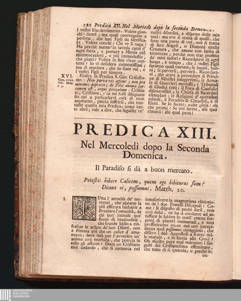 Predica XIII. Nel Mercoledì dopo la Seconda Domenica. Il Paradiso si dà a buon m[...]