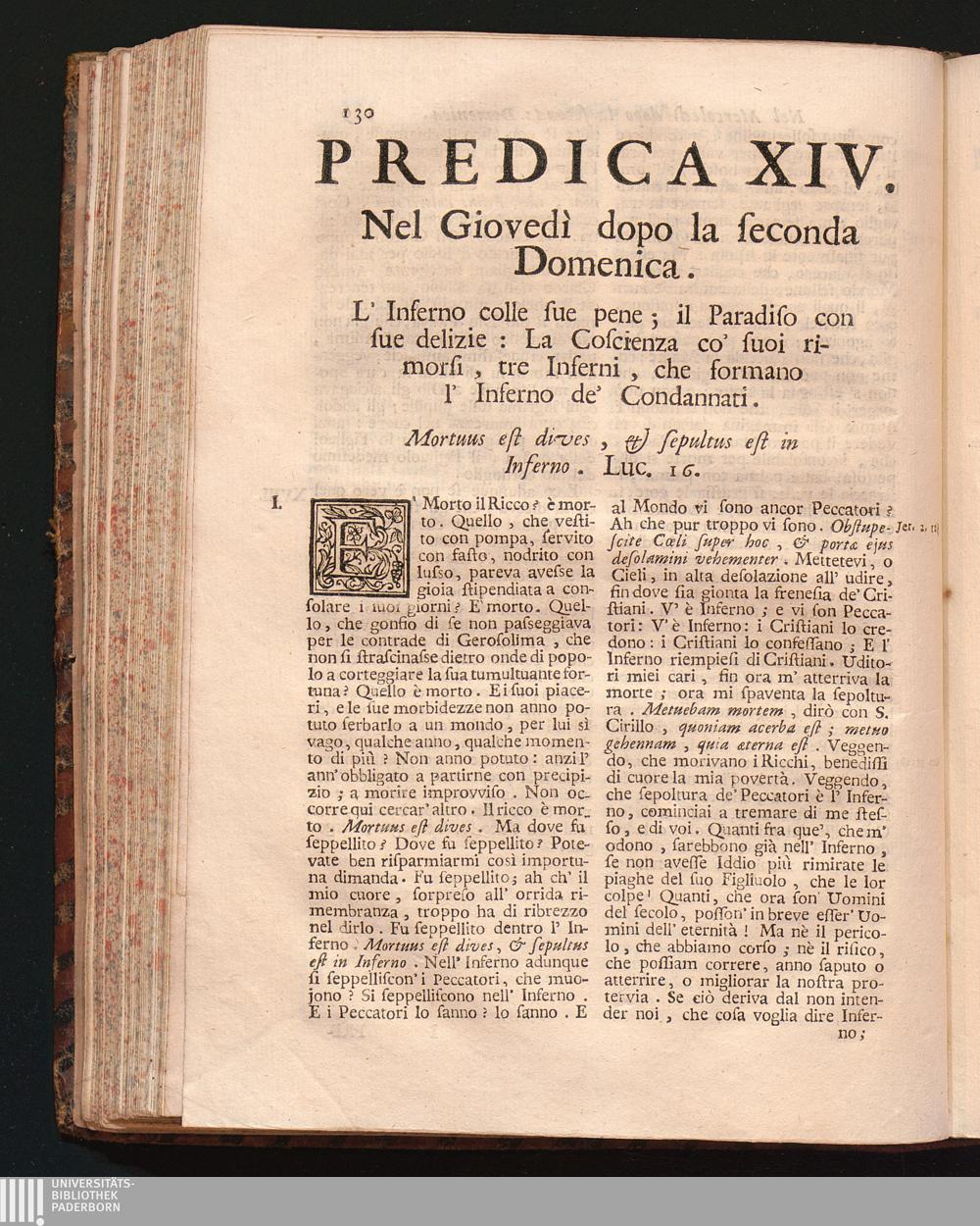 Predica XIV. Nel Giovedì dopo la Seconda Domenica. L'Inferno colle sue pene; il Paradiso[...]