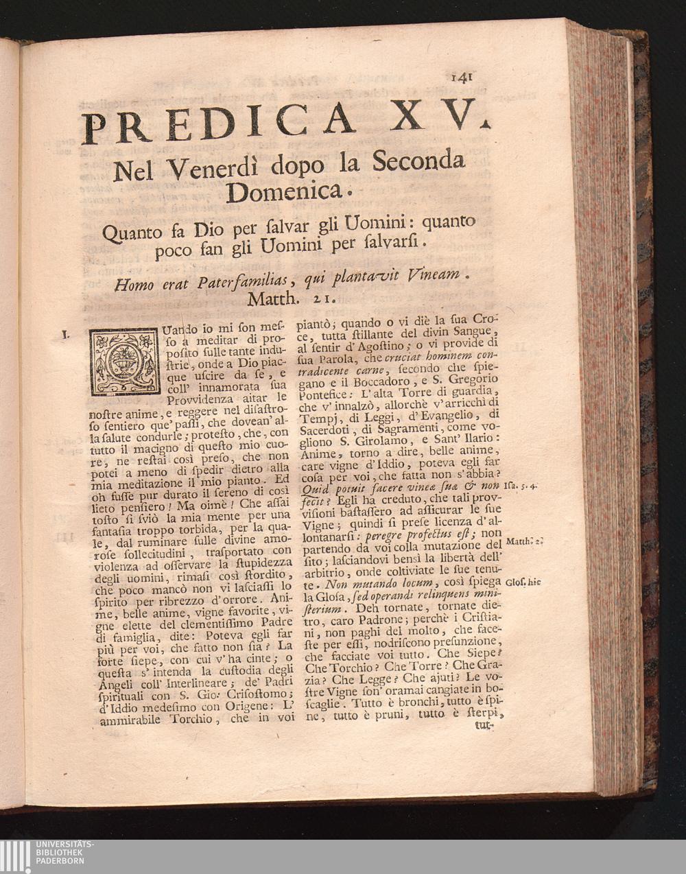 Predica XV. Nel Venerdì dopo la Seconda Domenica. Quanto fa Dio per falvar gli Uomini:[...]
