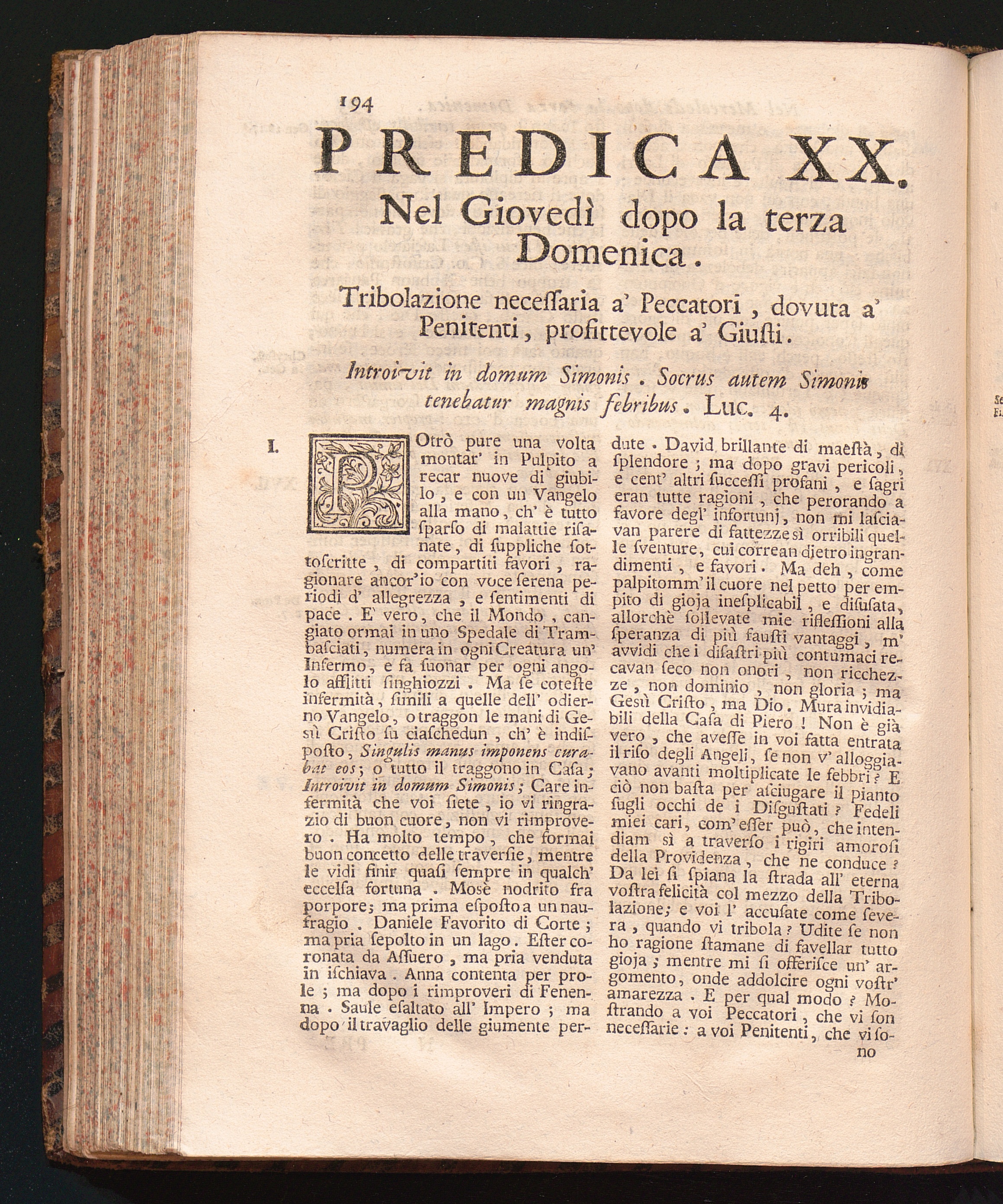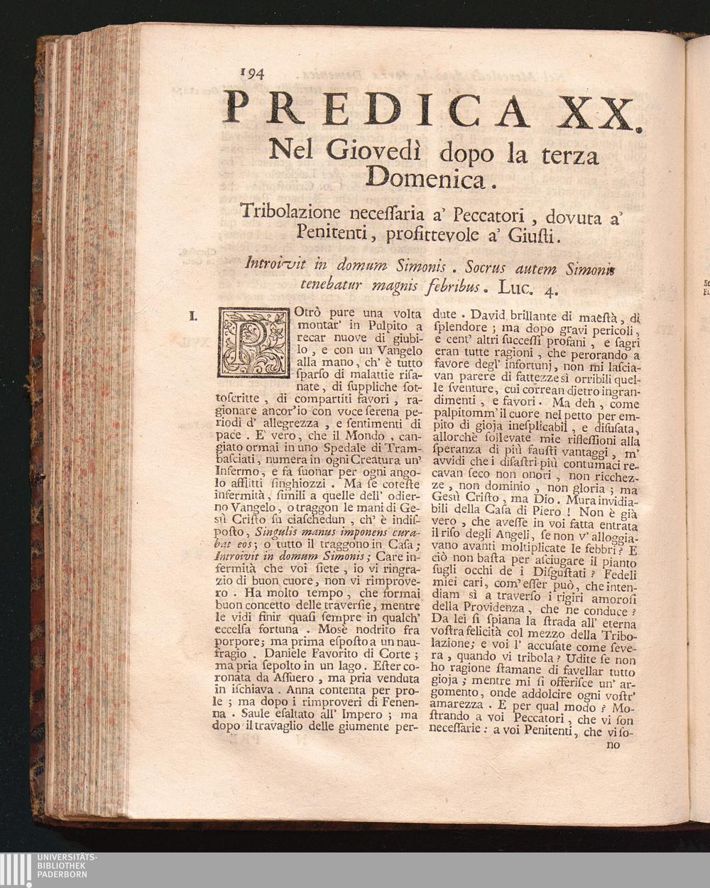 Predica XX. Nel Giovedì dopo la Terza Domenica. Tribolazione necessaria a'Peccatori,[...]