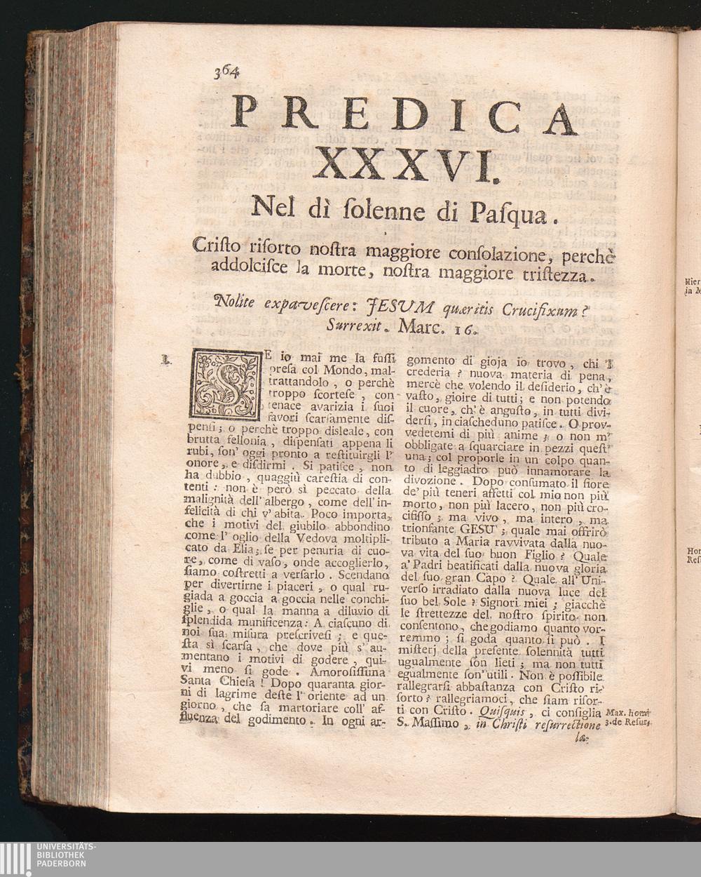 Predica XXXVI. Nel dì solenne di Pasqua. Cristo Risorto nostra maggiore consolazione,[...]