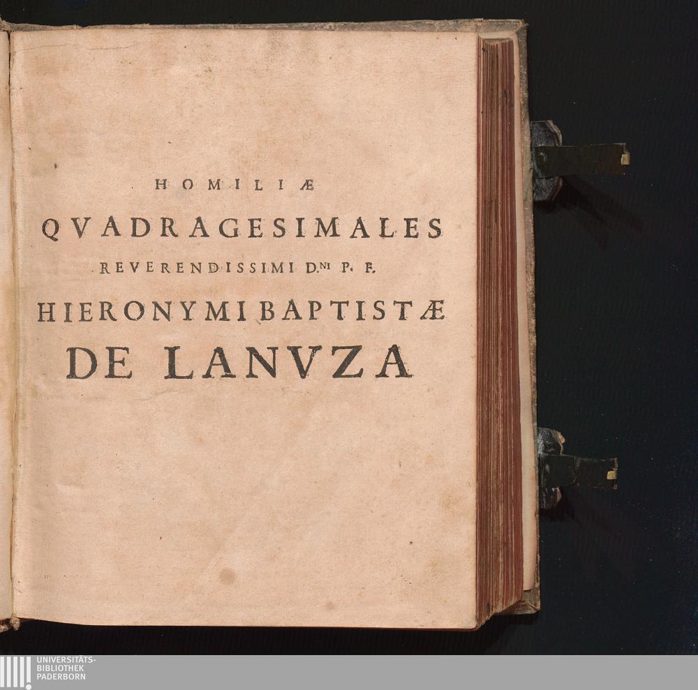 Homiliæ Qvadragesimales Reverendissimi D.ni P. F. Hieronymi Baptistæ De Lanvza Venerabilis[...]