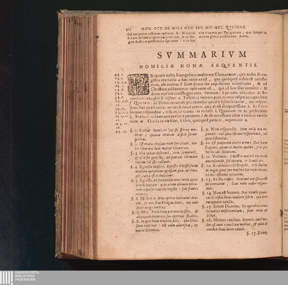 Svmmarivm Homiliæ Nonæ Seqventis.