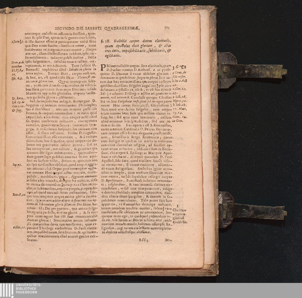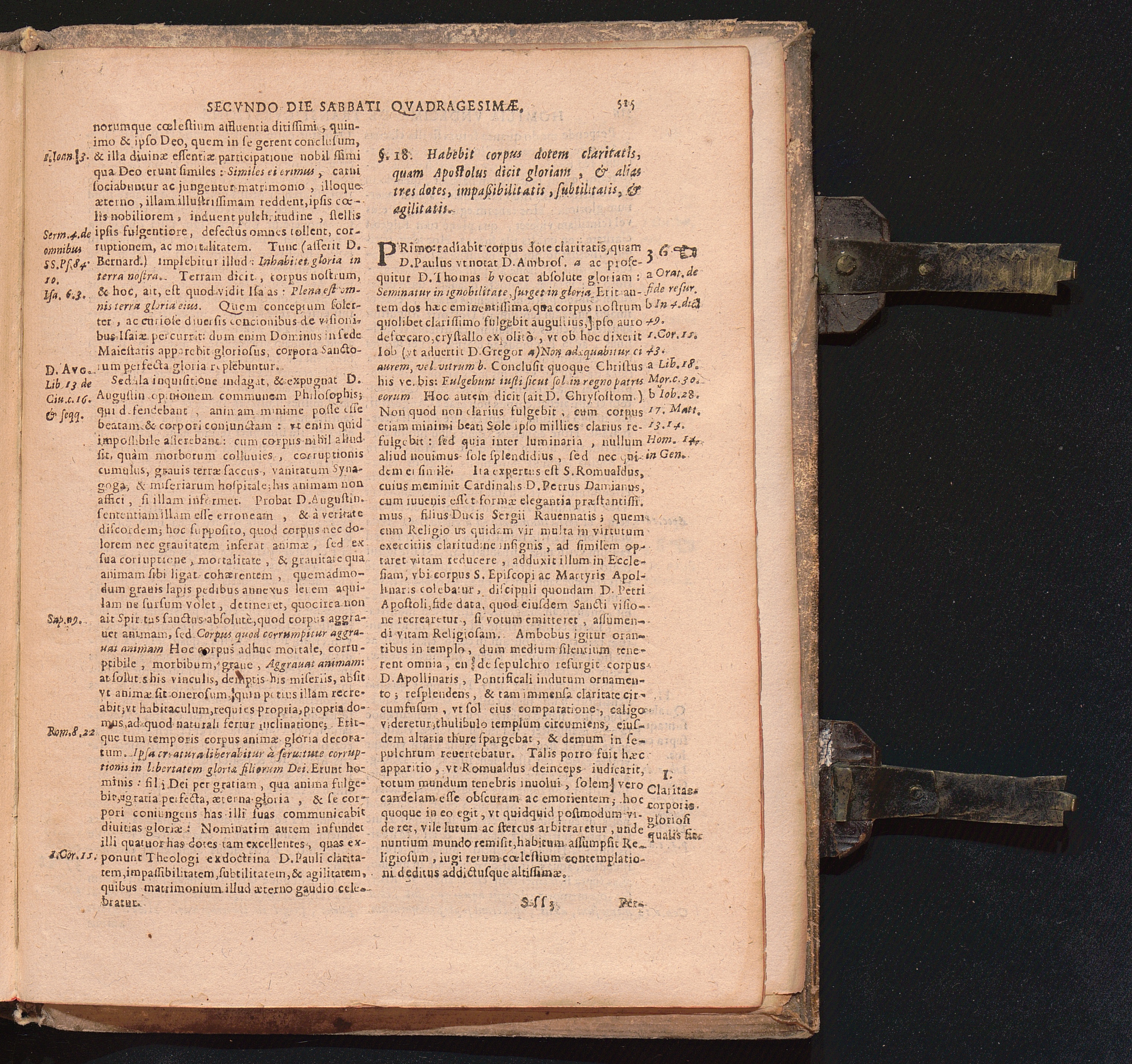 §. 18. Habebit corpus dotem claritatis, quam Apostolus dicit gloriam, & alias tres[...]