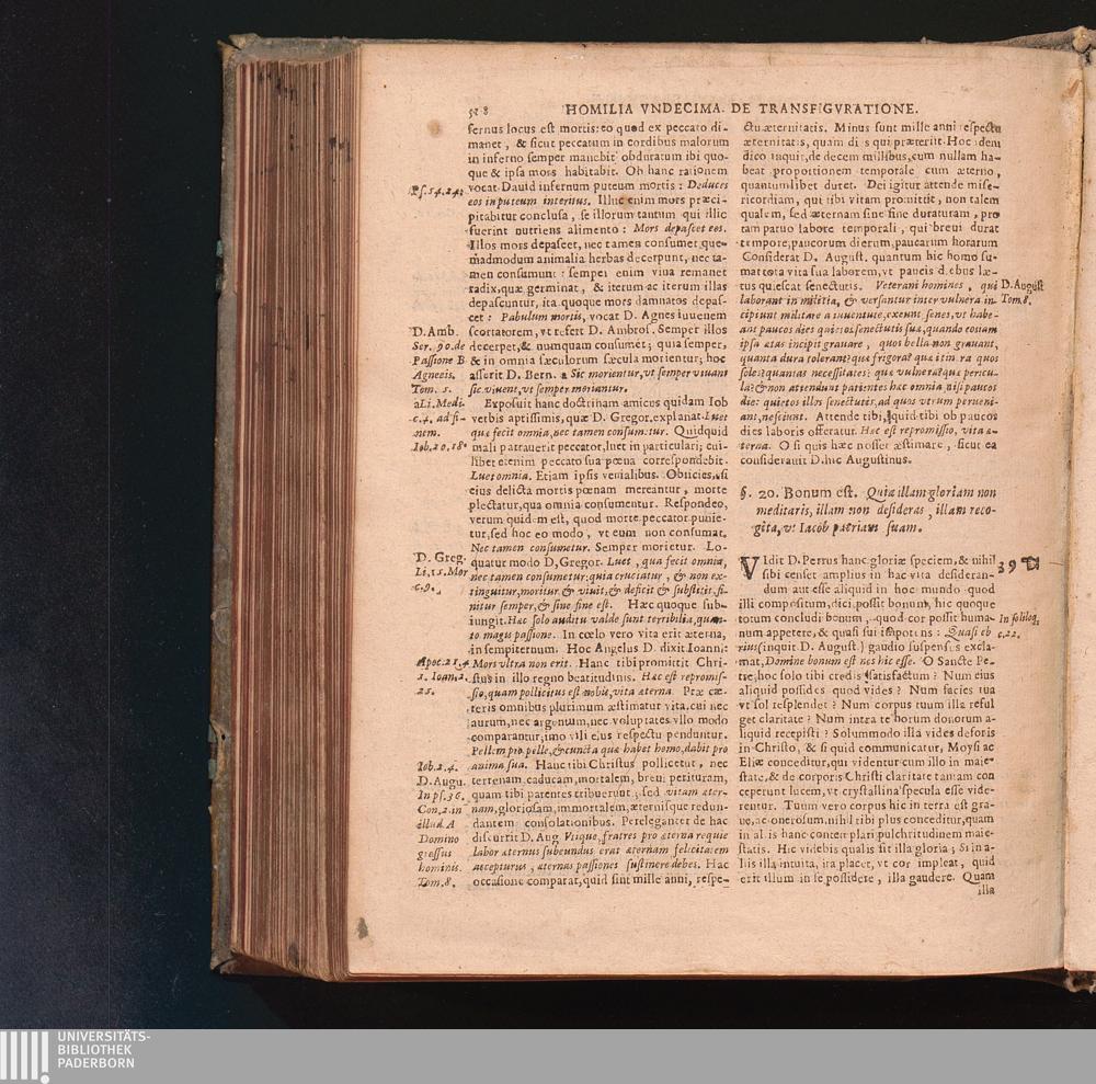 §. 20. Bonum est. Quia illam gloriam non meditaris, illam non desideras, illam recogita,[...]