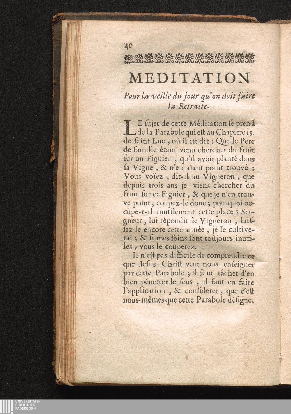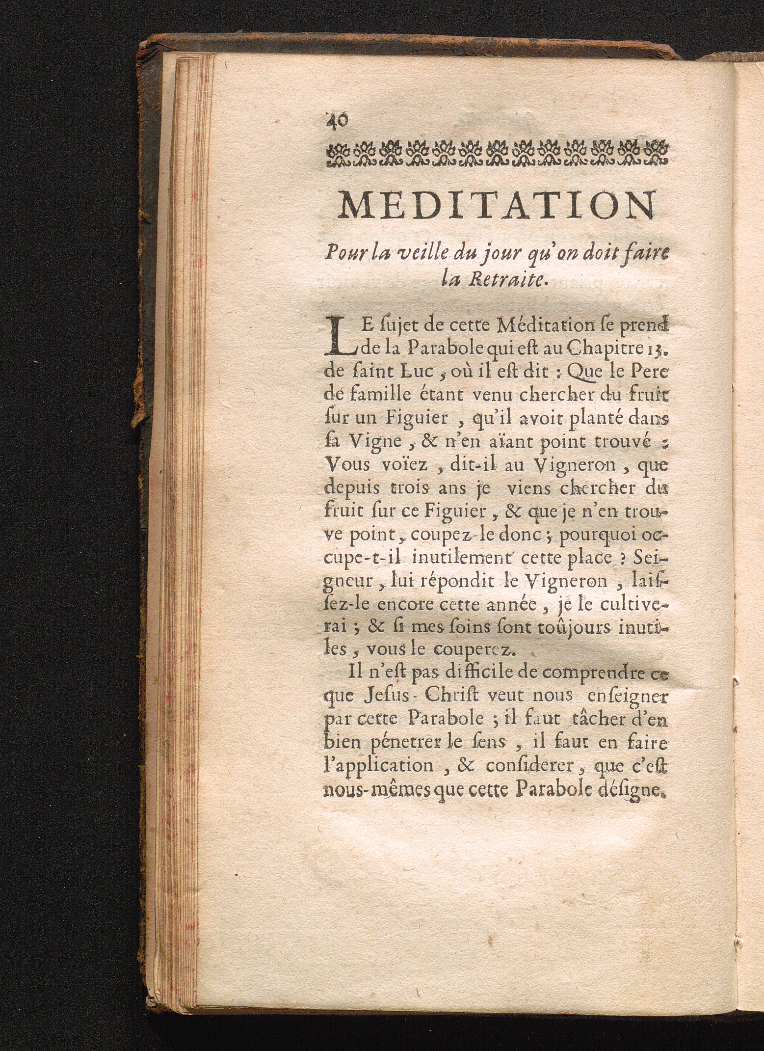 Meditation pour la veille du jour qu'on doit faire la Retraite.
