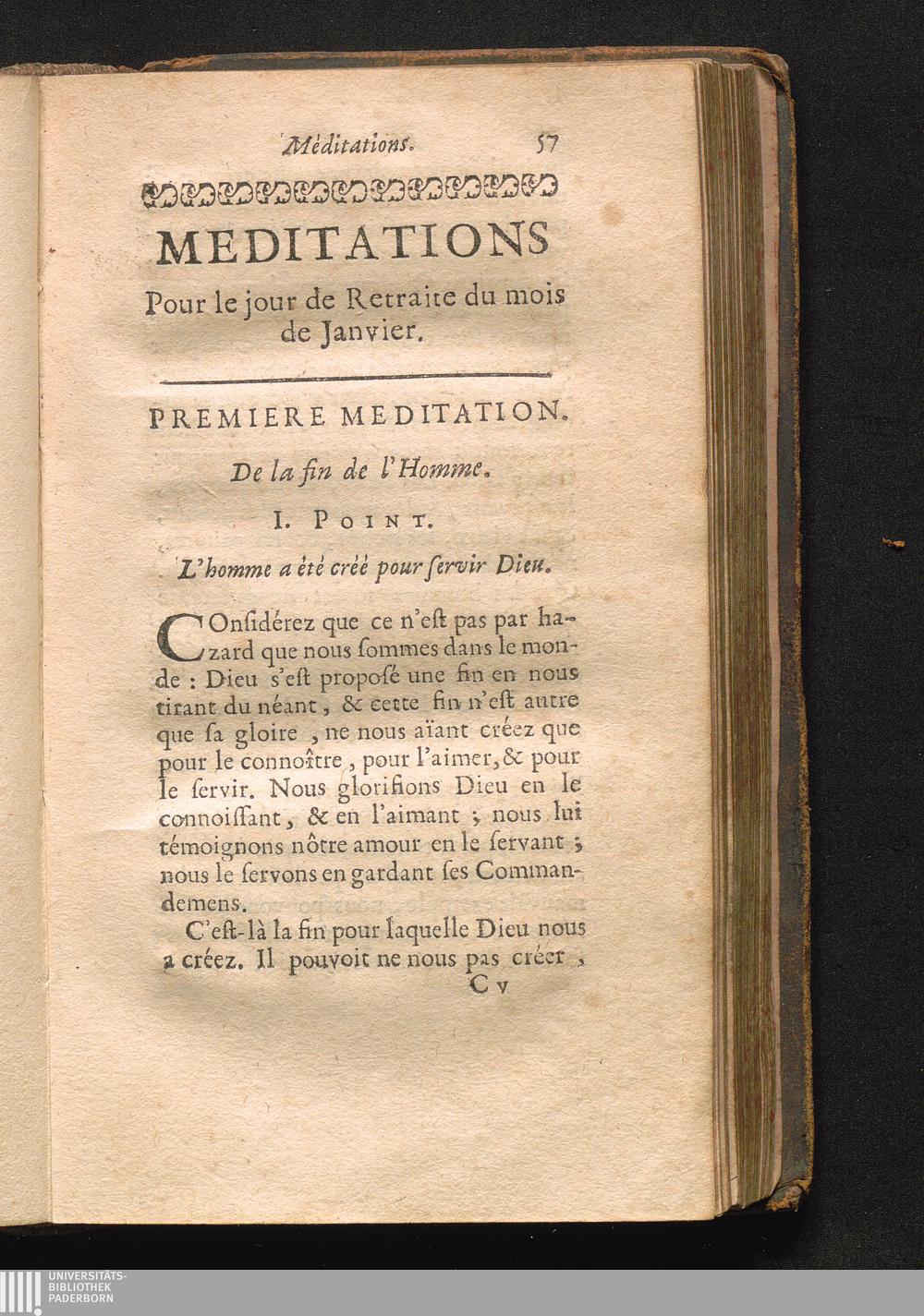 I. Medit. De la fin de l'Homme.