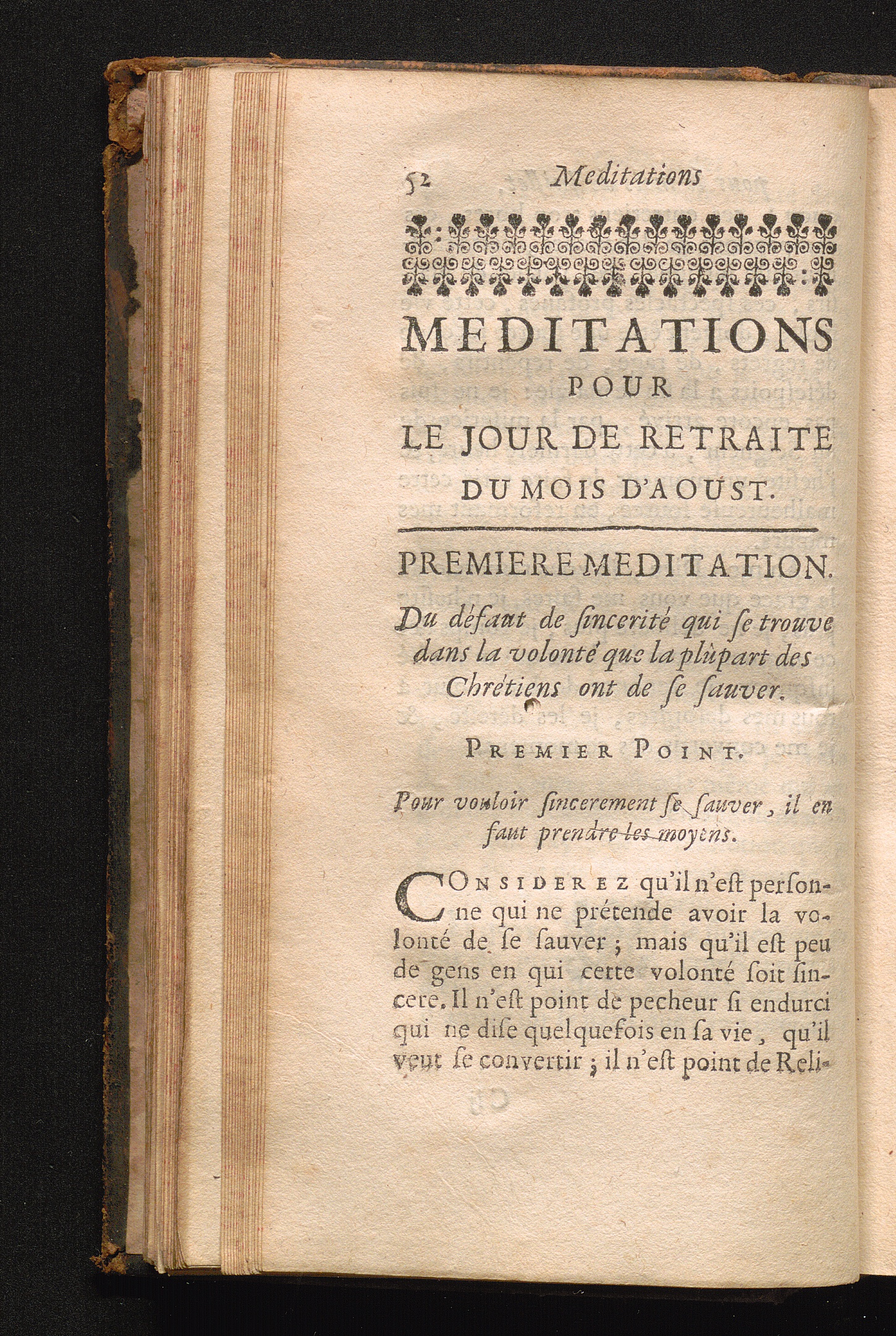 I. Medit. Du défaut de sincerité qui se trouve dans la volonté que la plûpart des[...]