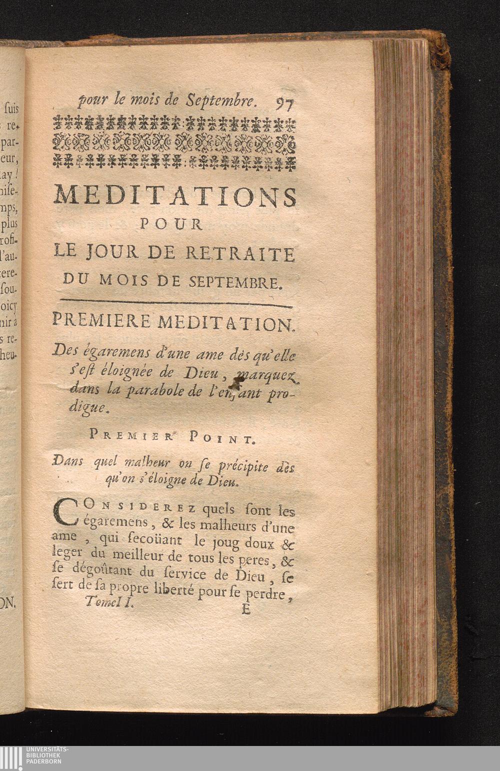 I. Medit. Des égaremens d'une ame dès qu'elle s'est éloignée de Dieu, marquez dans[...]