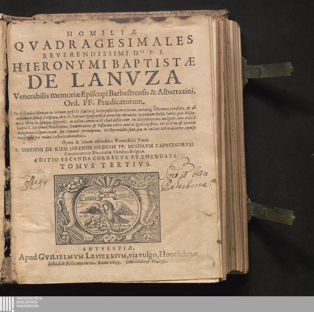 Homiliæ Qvadragesimales Reverendissimi D.ni P. F. Hieronymi Baptistæ De Lanvza Venerabilis[...]