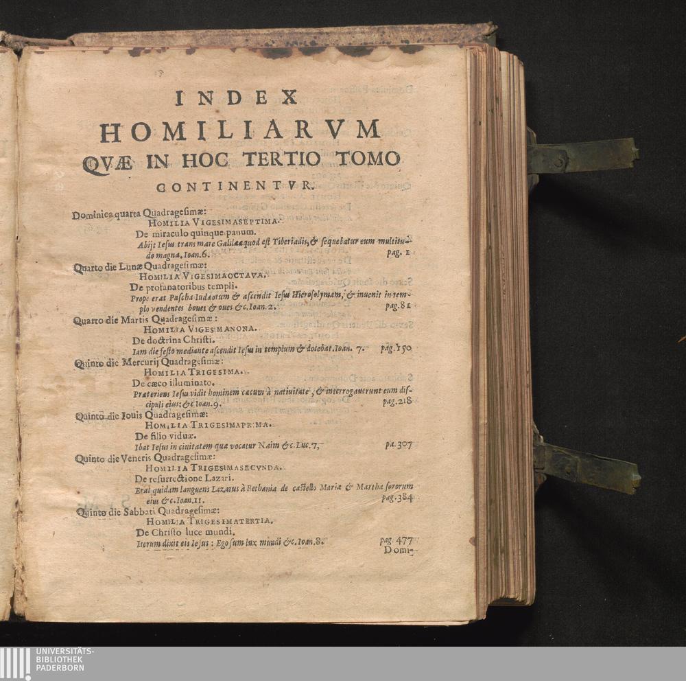 Index Homiliarvm Qvæ In Hoc Tertio Tomo Continentvr.