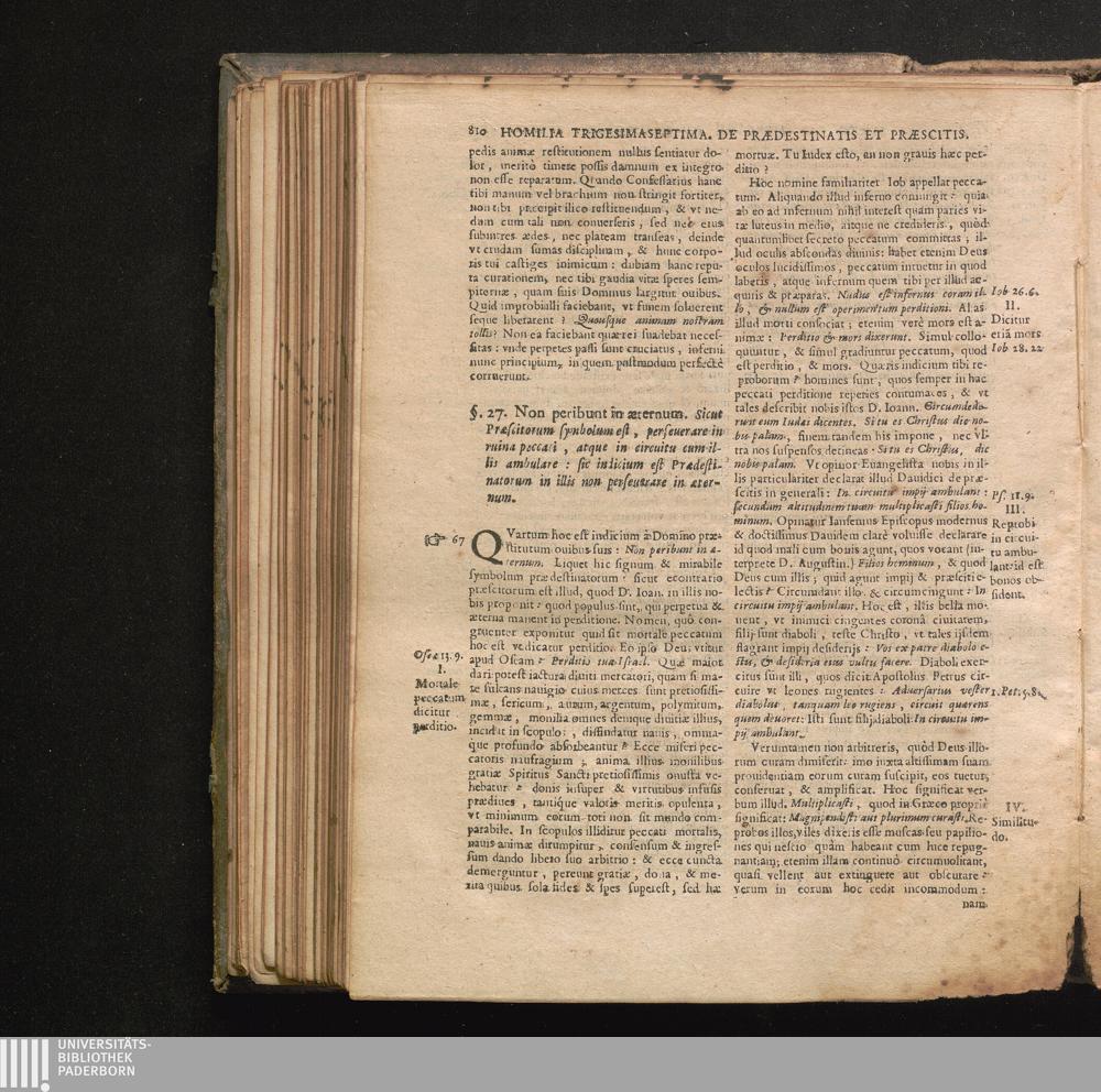 §.27. Non peribunt in æternum. Sicut Præscitorum symbolum est, perseuerare in ruina[...]