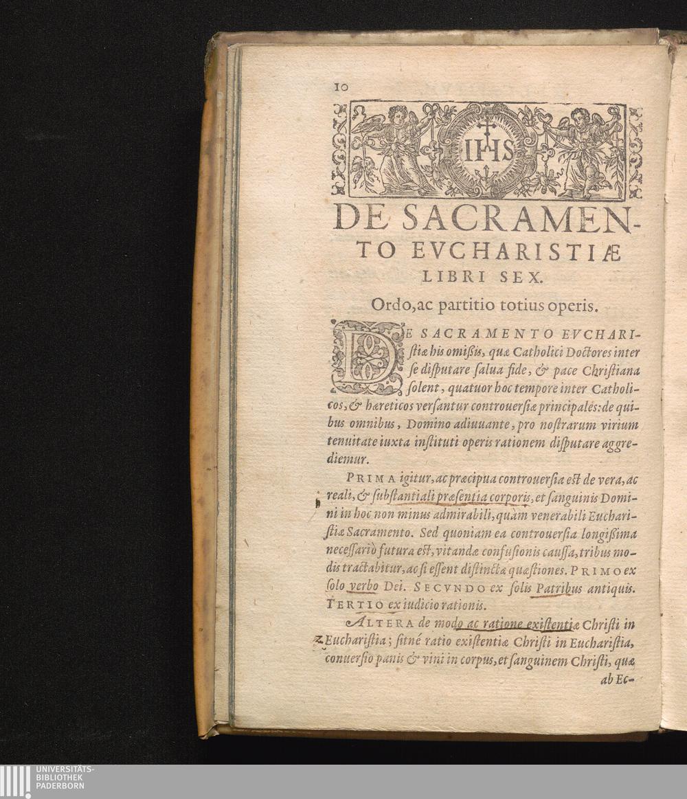 De Sacramento Evcharistiæ Libri Sex. Ordo, ac partitio totius operis.