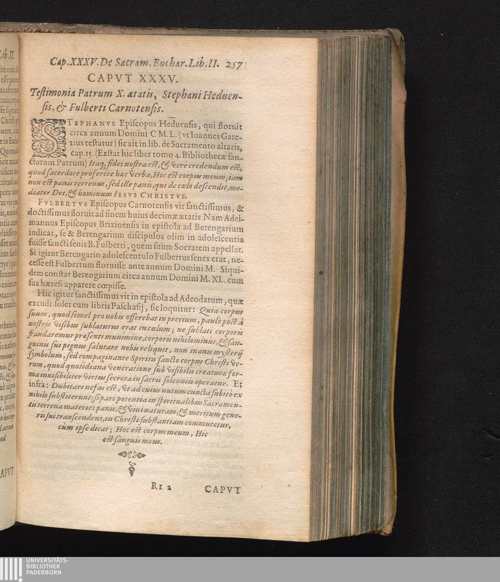 Liber Secvndvs, De veritate corporis Domini in Eucharistia, ex testimoniis Patru[...]