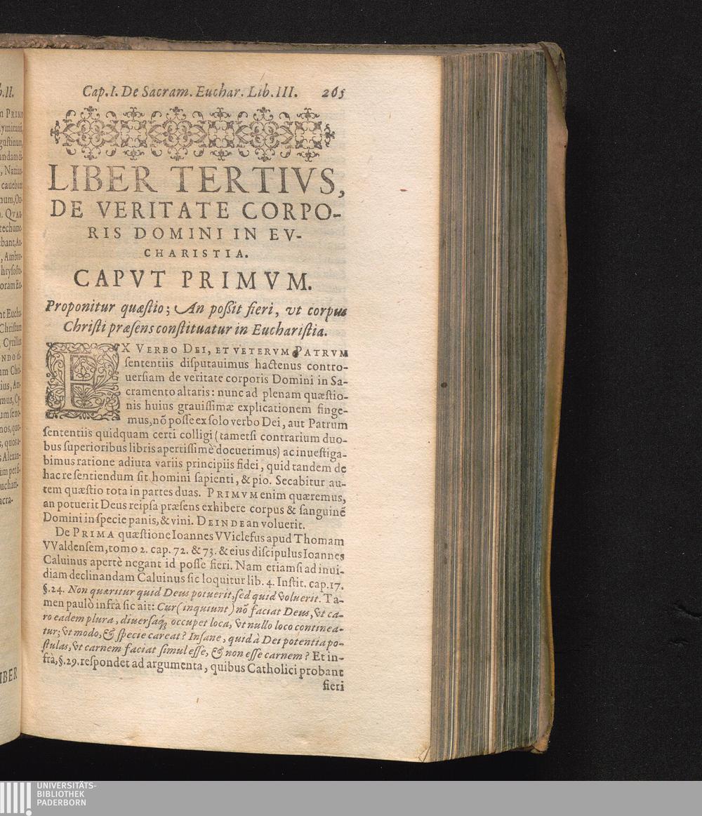 Liber Tertivs, De veritate Domini in Eucharistia, & de modo existentiæ in eâdem.