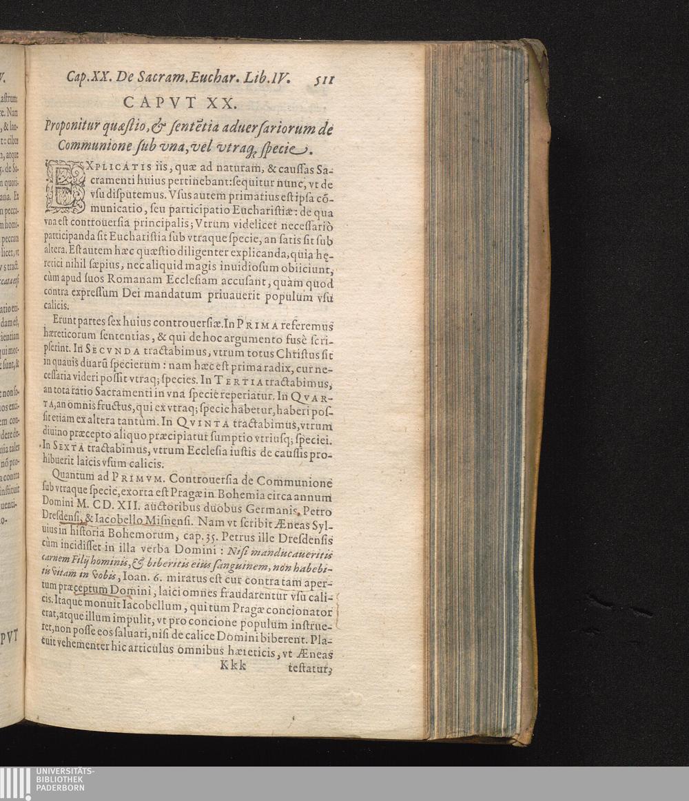XX. Proponitur quæstio, & sententiæ aduersariorum de Communione sub vna, vel vtraque[...]