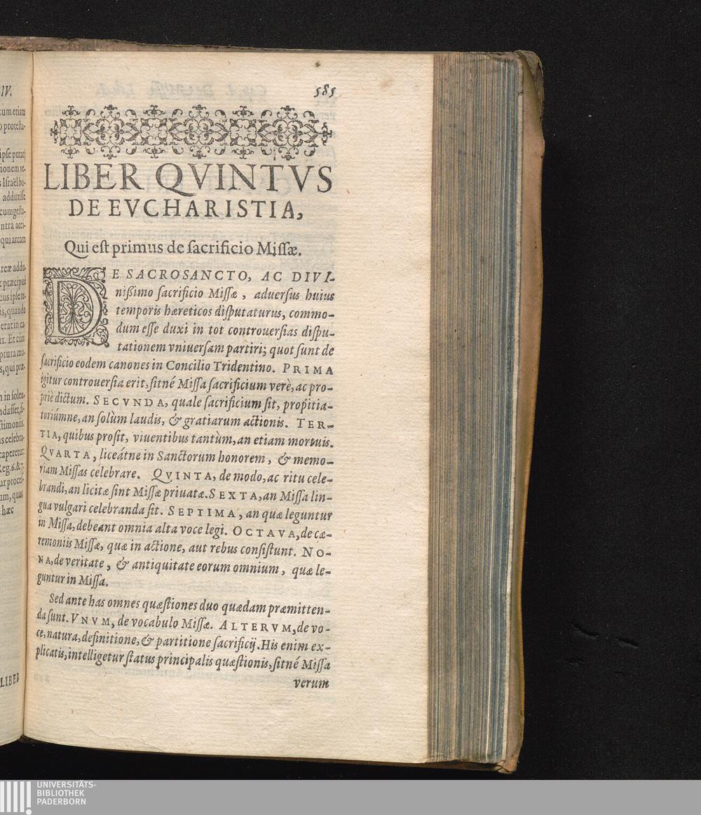 Liber Qvintvs. De Eucharistia: qui est primus de sacrificio Missæ.