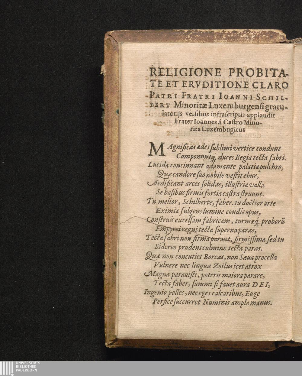 Religione Probitate Ervditione Claro Patri Fratri Ioanni Schilbert Minoritæ Luxemburgensi[...]