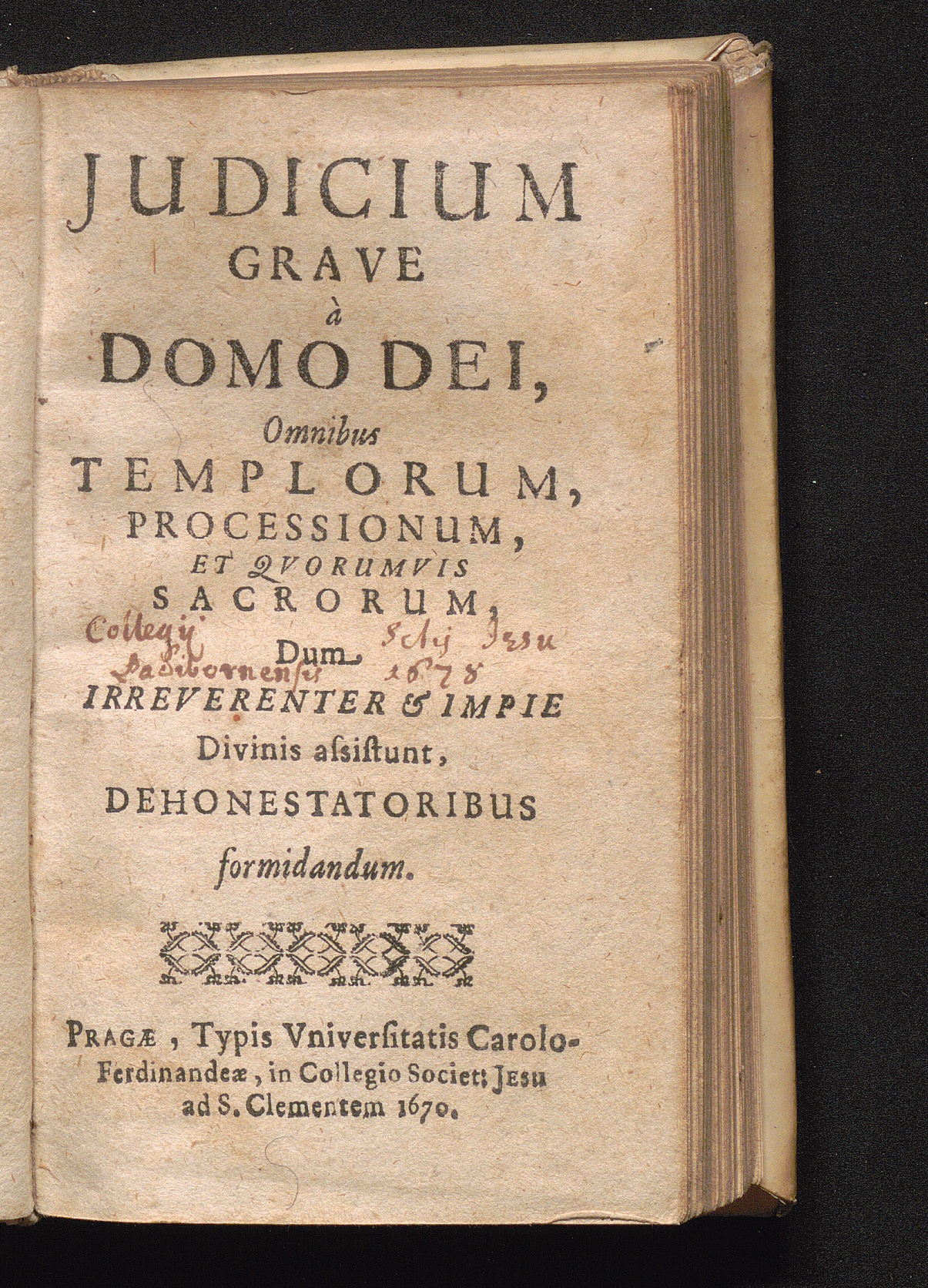 Judicium Grave à Domo Dei, Omnibus Templorum, Processionum, Et Qvorumvis Sacrorum, Dum Irreverenter & Impie Divinis assistunt, Dehonestatoribus formidandum