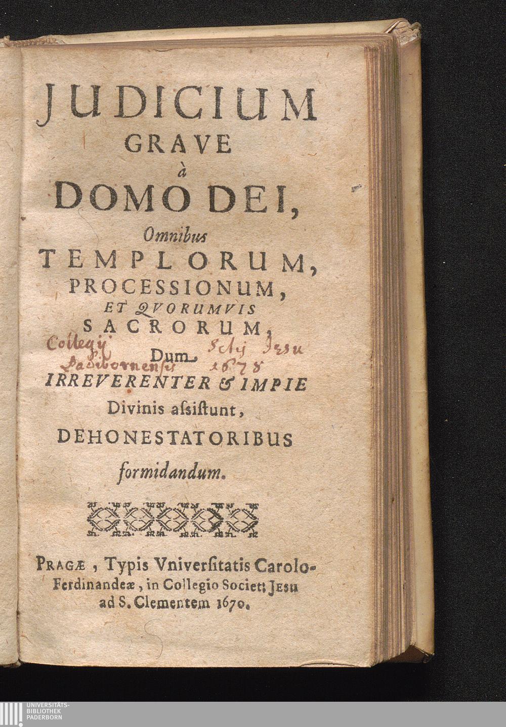 Judicium Grave à Domo Dei, Omnibus Templorum, Processionum, Et Qvorumvis Sacrorum,[...]