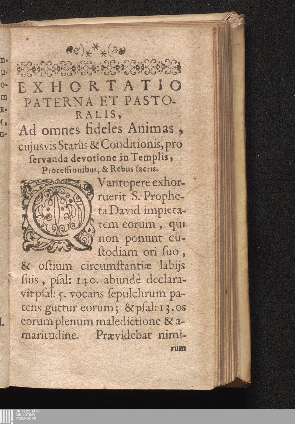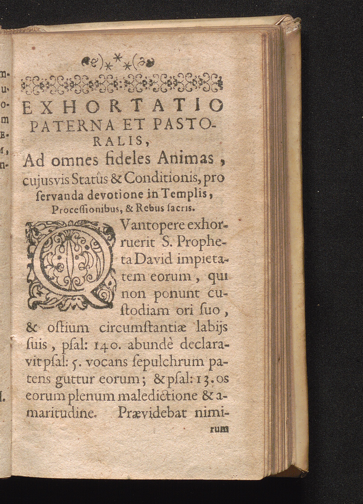 Exhortatio Paterna Et Pastoralis, Ad omnes fideles Animas, cujusvis Statûs & Conditionis, pro servanda devotione in Templis, Processionibus, & Rebus sacris.