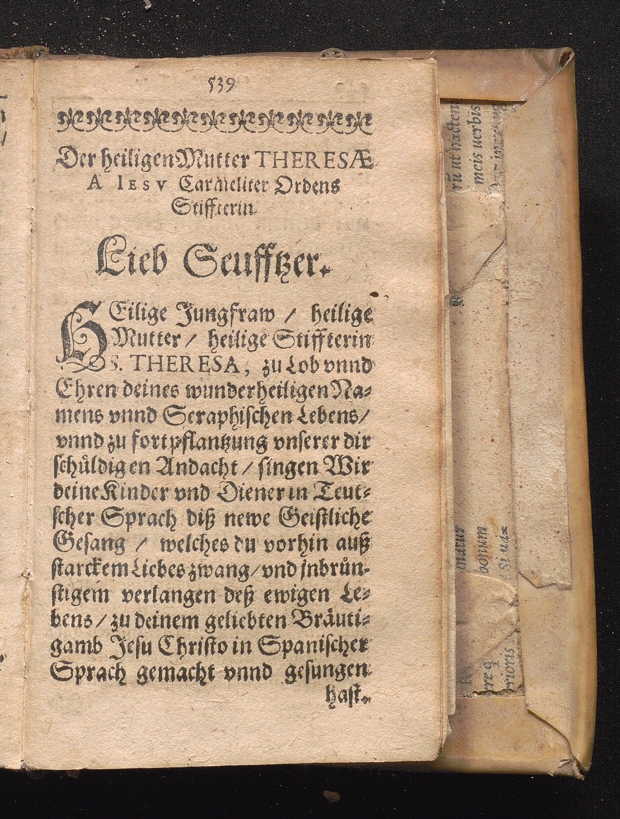 Summarium vndt Kurtzer Inhalt Der Staffeln des Innerlichen Gebetts, vermittels deren die Seel zur volkomenheit der beschaulichkeit gelangt vnd auffsteigt / Gezogen auß den büchern vnd Schrifften der H. Jungfr: vnd Muetter Theresiæ de Iesv, der Discalcierten Carmeliter Stiffterinn. Durch den Ehrw: P.F. Thomas à Iesv, des gmelten Ordens Religiosen