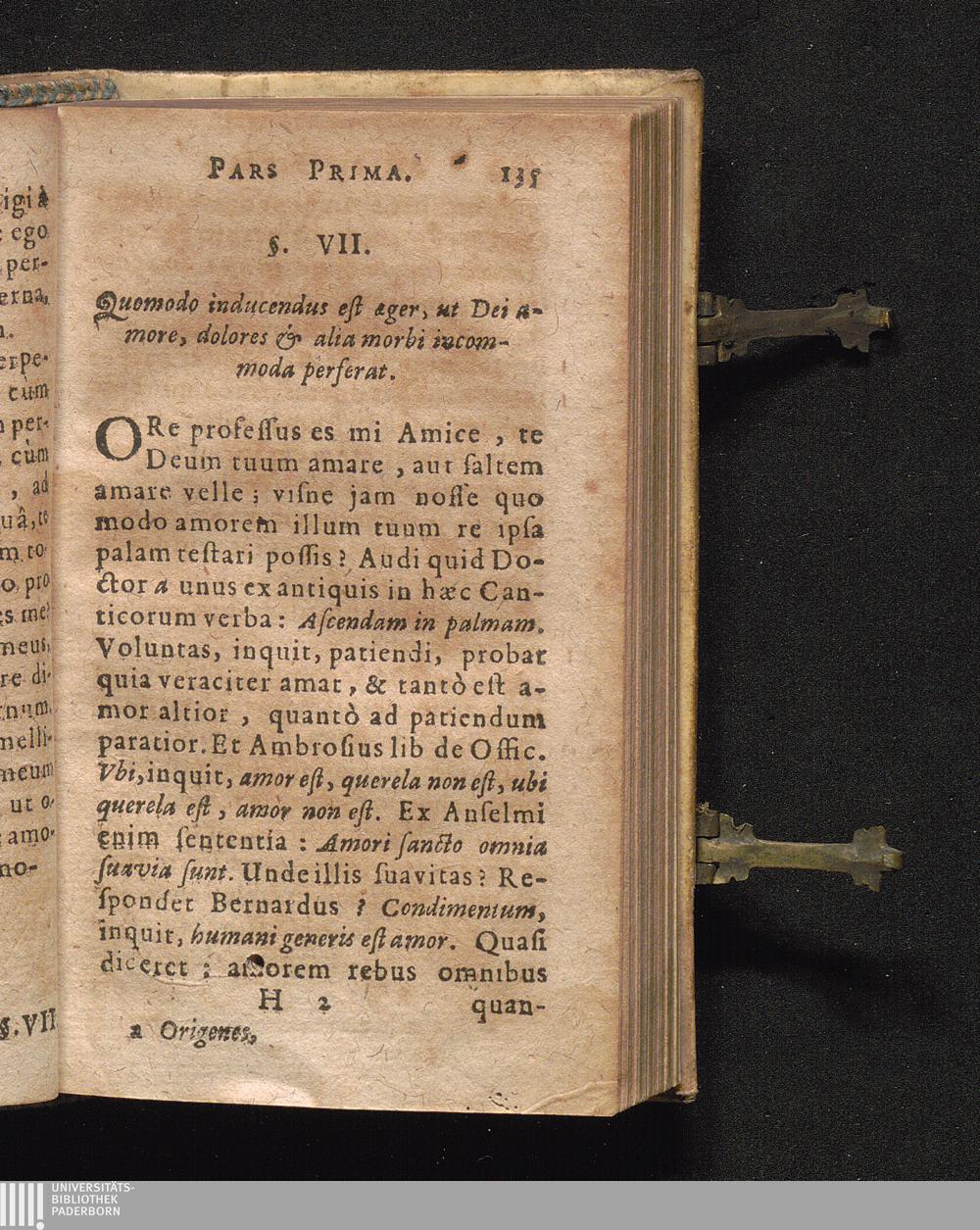 §. VII. Quomodo inducendus est æger, ut Dei amore, dolores & alia morbis incommoda[...]