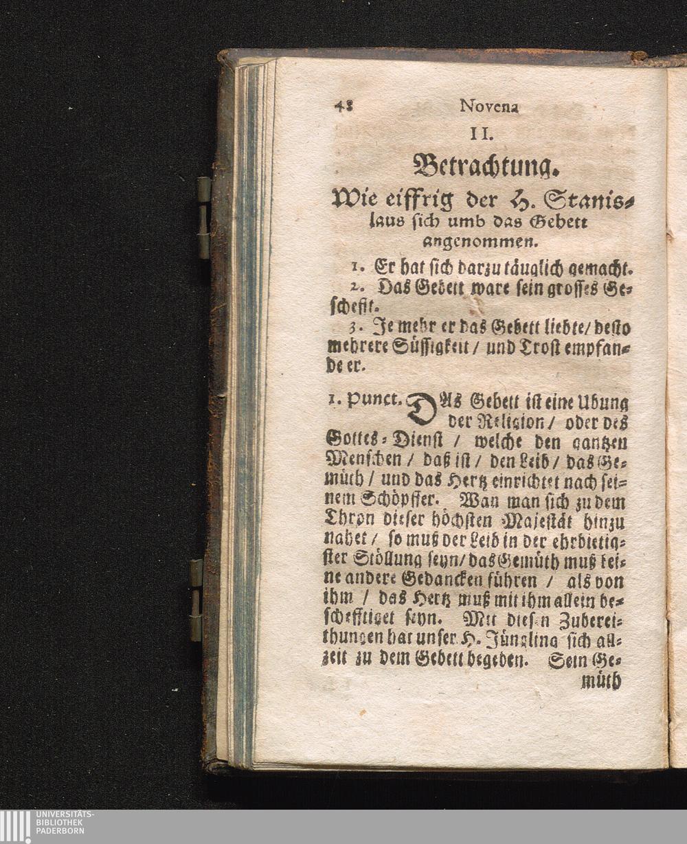 2. Von der Betrachtung/ wie eiffrig der H. Stanislaus sich umb das Gebett angeno[...]
