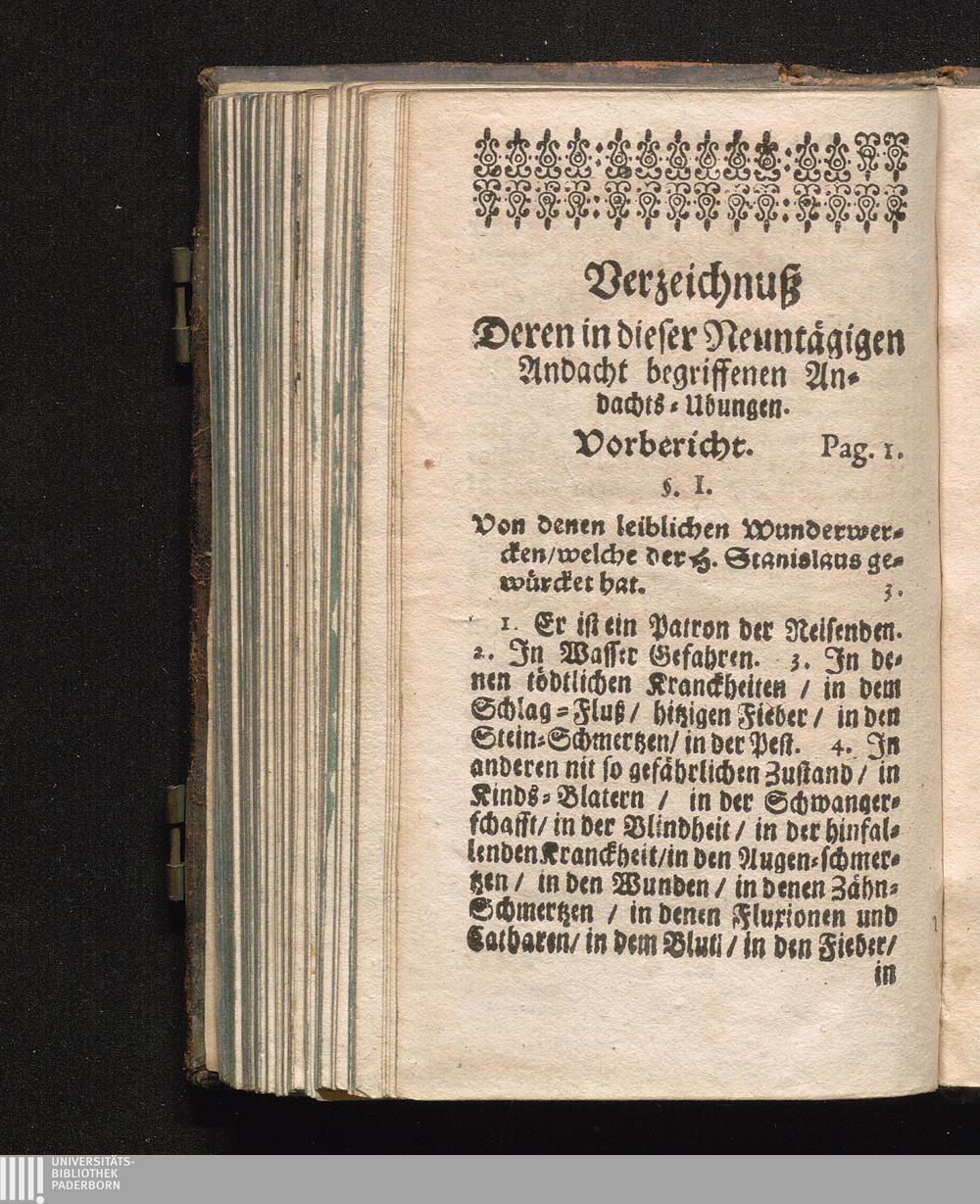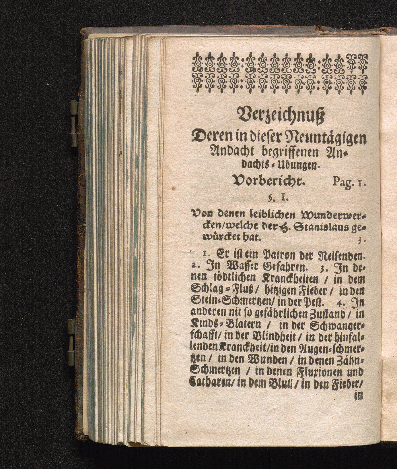 Verzeichnuß Deren in dieser Neuntägigen Andacht begriffenen Andachts-Ubungen.