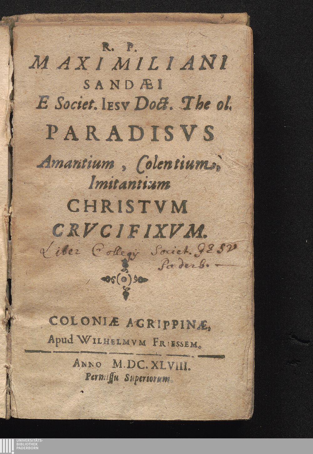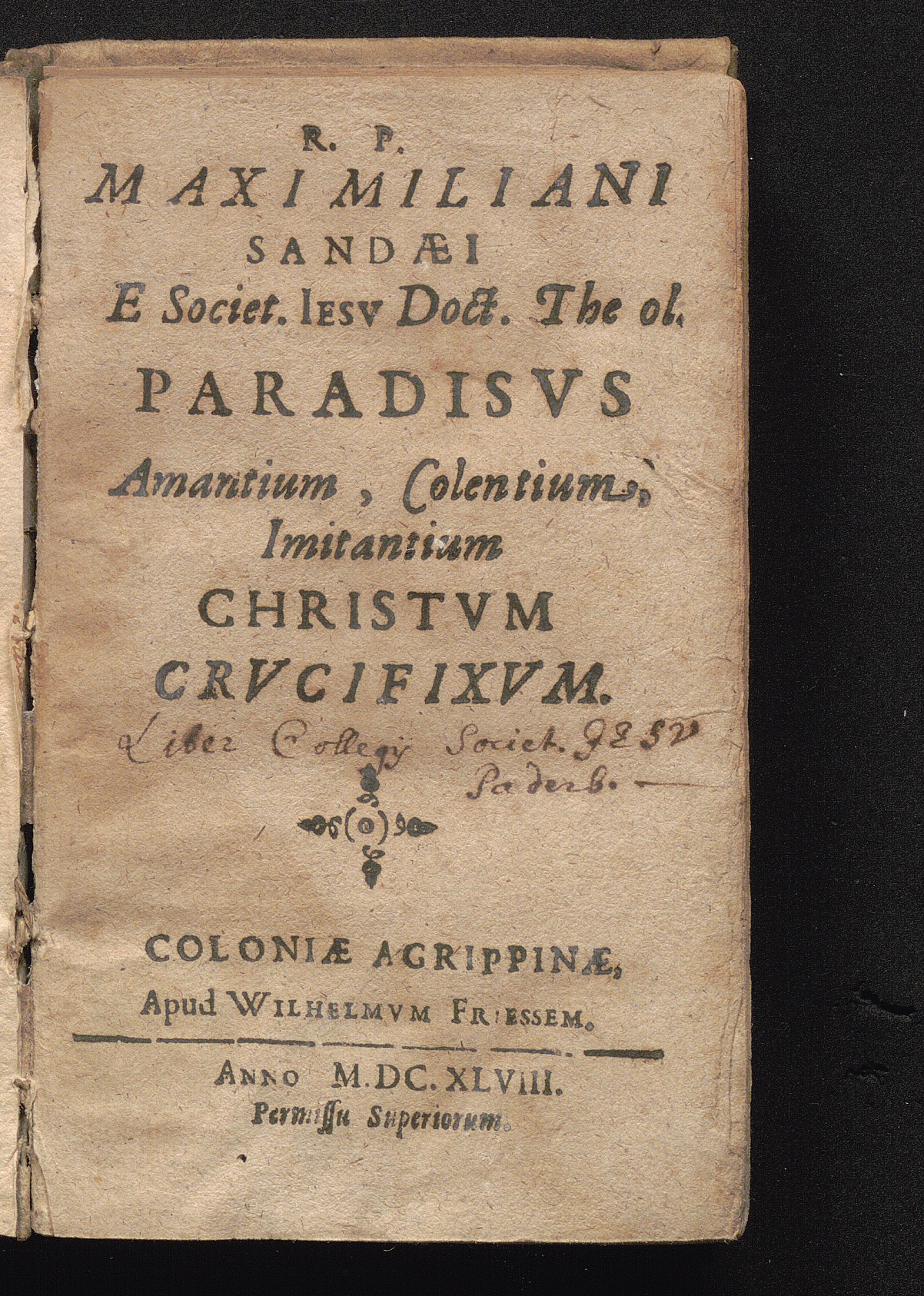R. P. Maximiliani Sandæi E Societ. Iesv Doct. Theol. Paradisvs Amantium, Colentium, Imitantium Christvm Crvcifixvm