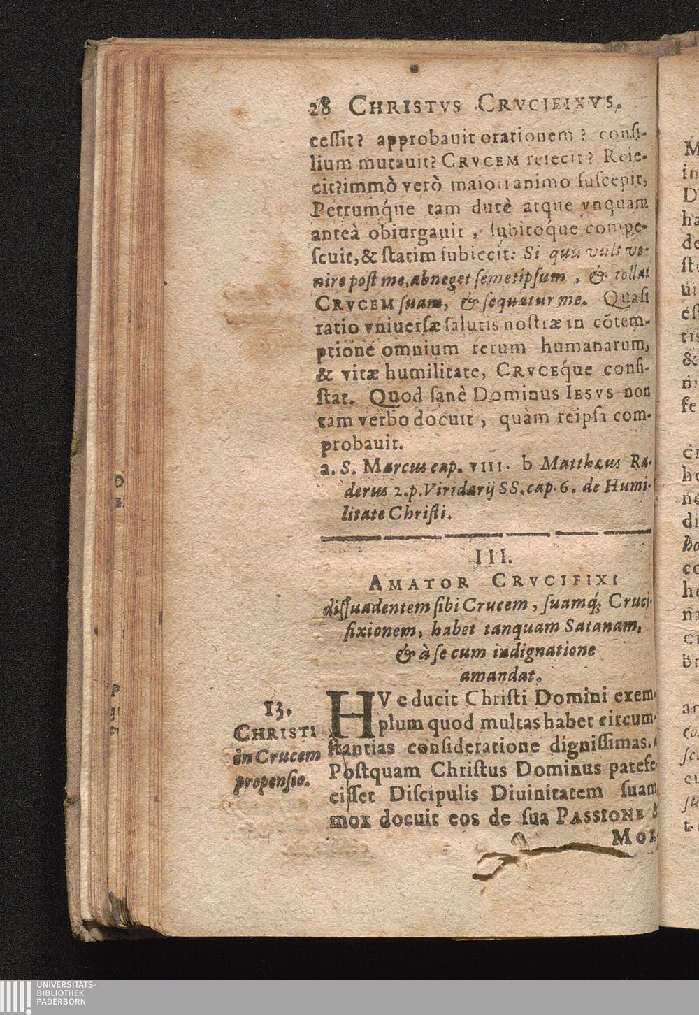 13. Dissuadentem sibi Crucem, suamq[ue] Crucifixionem habet, tanquam Satanam, & à[...]