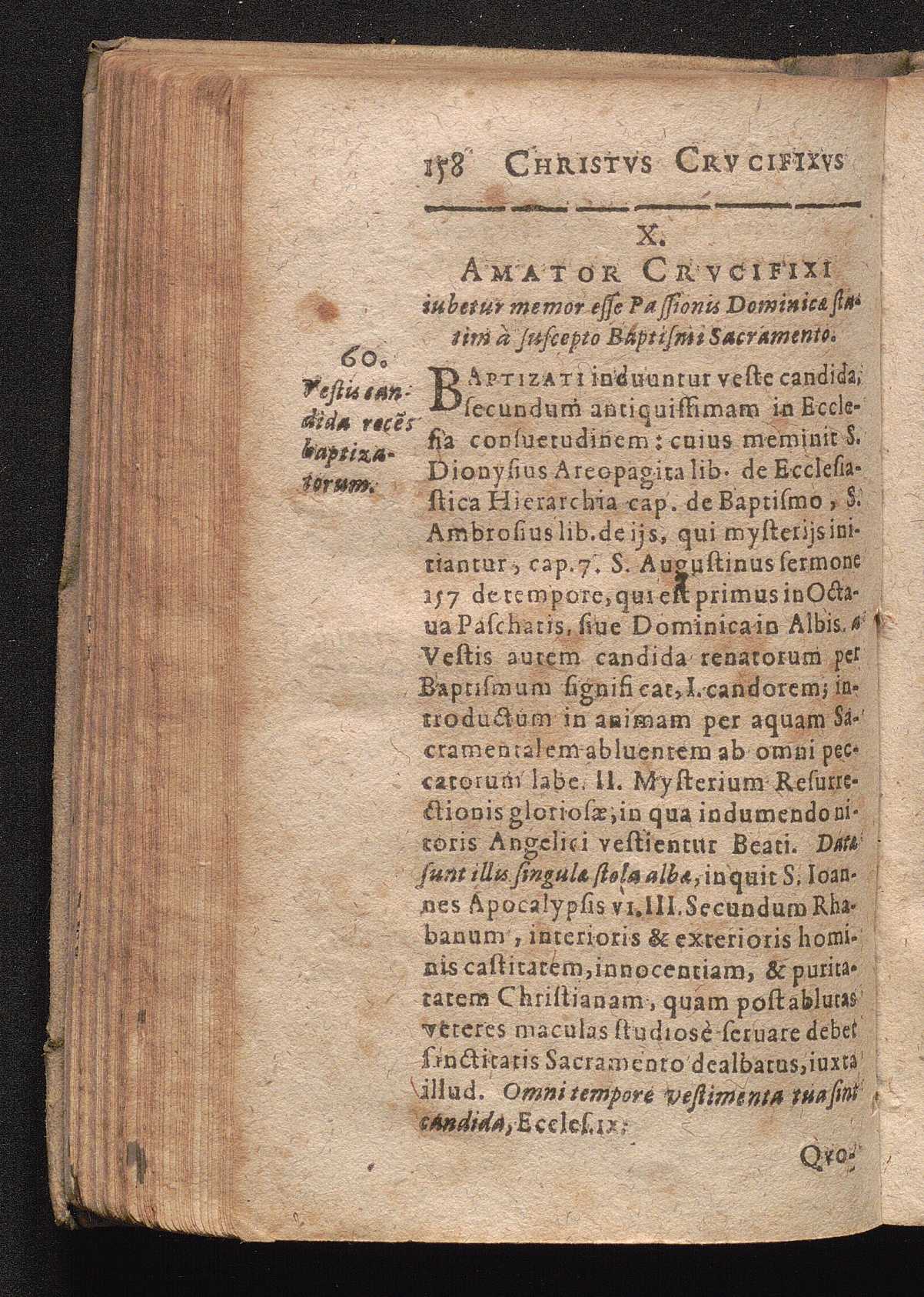 60. Iubetur memor esse Passionis Dominicæ statim à suspecto Baptismi Sacramento.