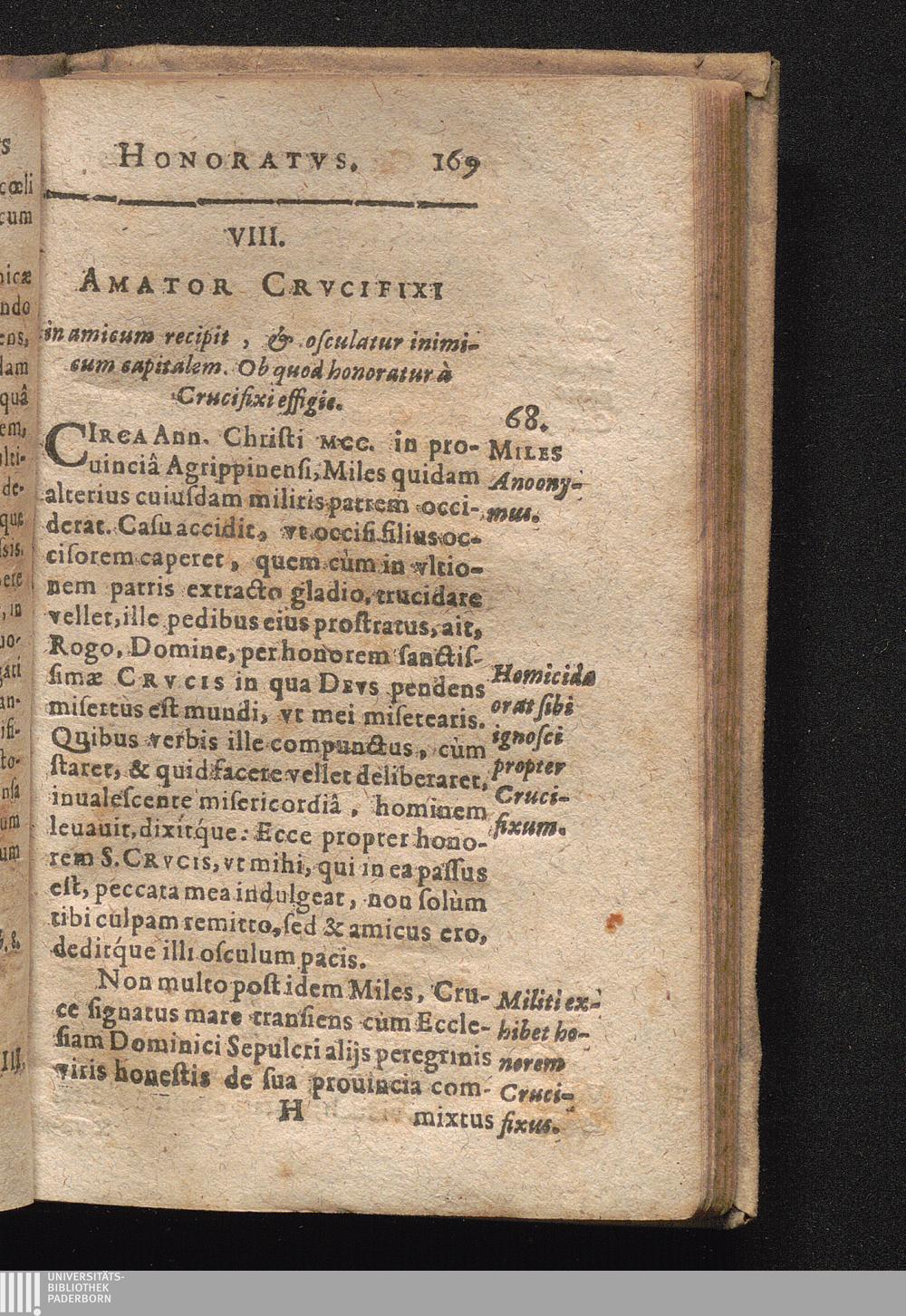 68. In amicum recipit, & osculatur inimicum capitalem. Ob quod honoratur à Crucifixi[...]