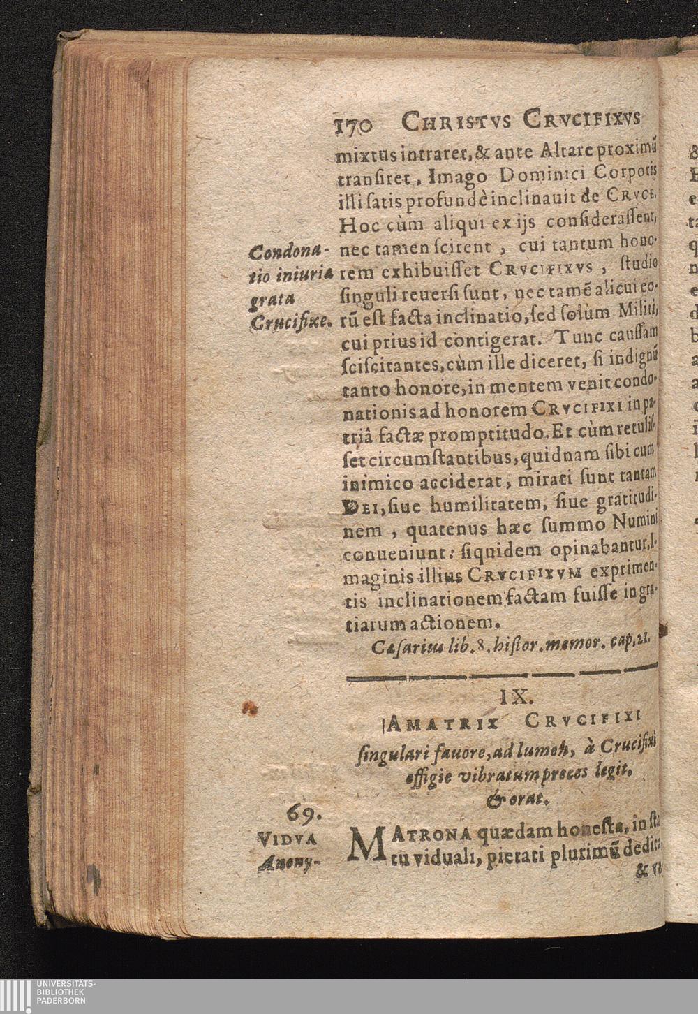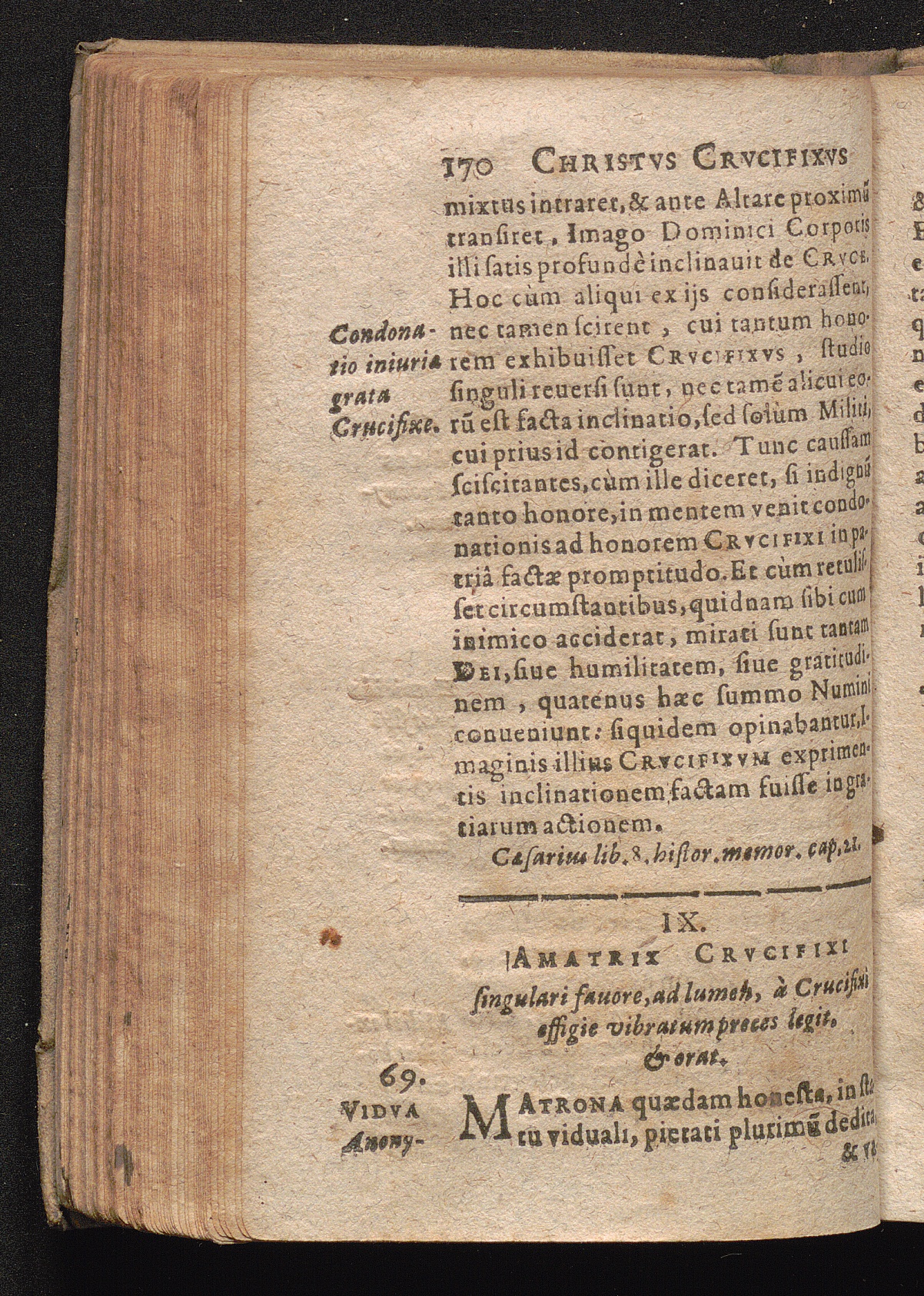 69. Singulari fauore ad lumen à Crucifixi effigie vibra cum preces legit & orat.