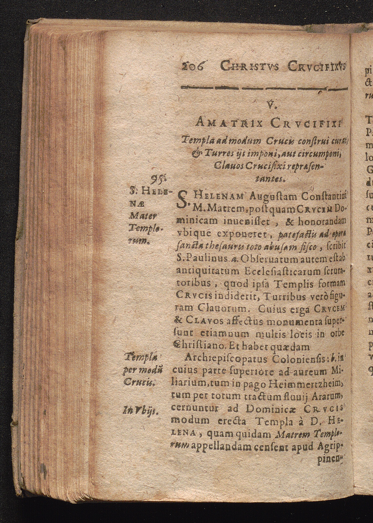 95. Templa ad formam Crucis extrui curat. Et Turres ijs imponi, aut circumponi Clauos[...]