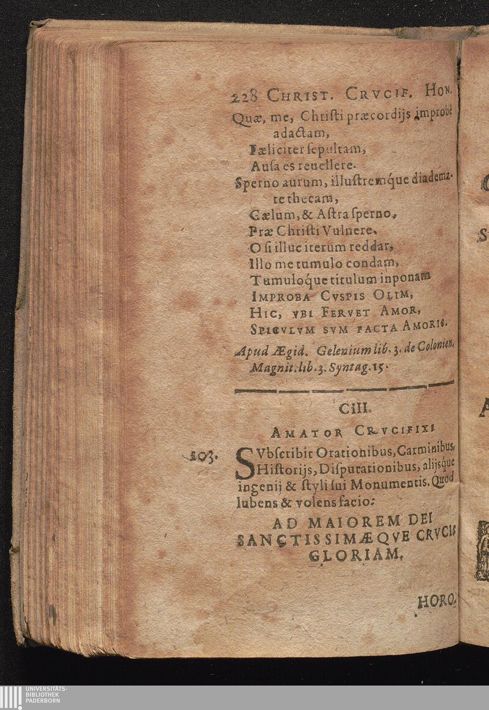103. Subscribit Orationibus, Carminibus, Historijs, Disputationibus alijsque ingenij[...]