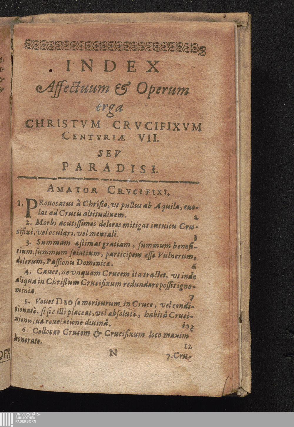 Index Affectuum & Operum erga Christvm Crvcifixvm Centvriæ VII. Sev Paradisi.