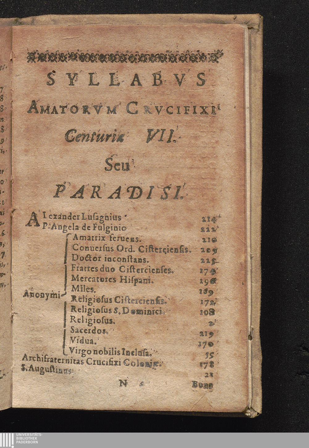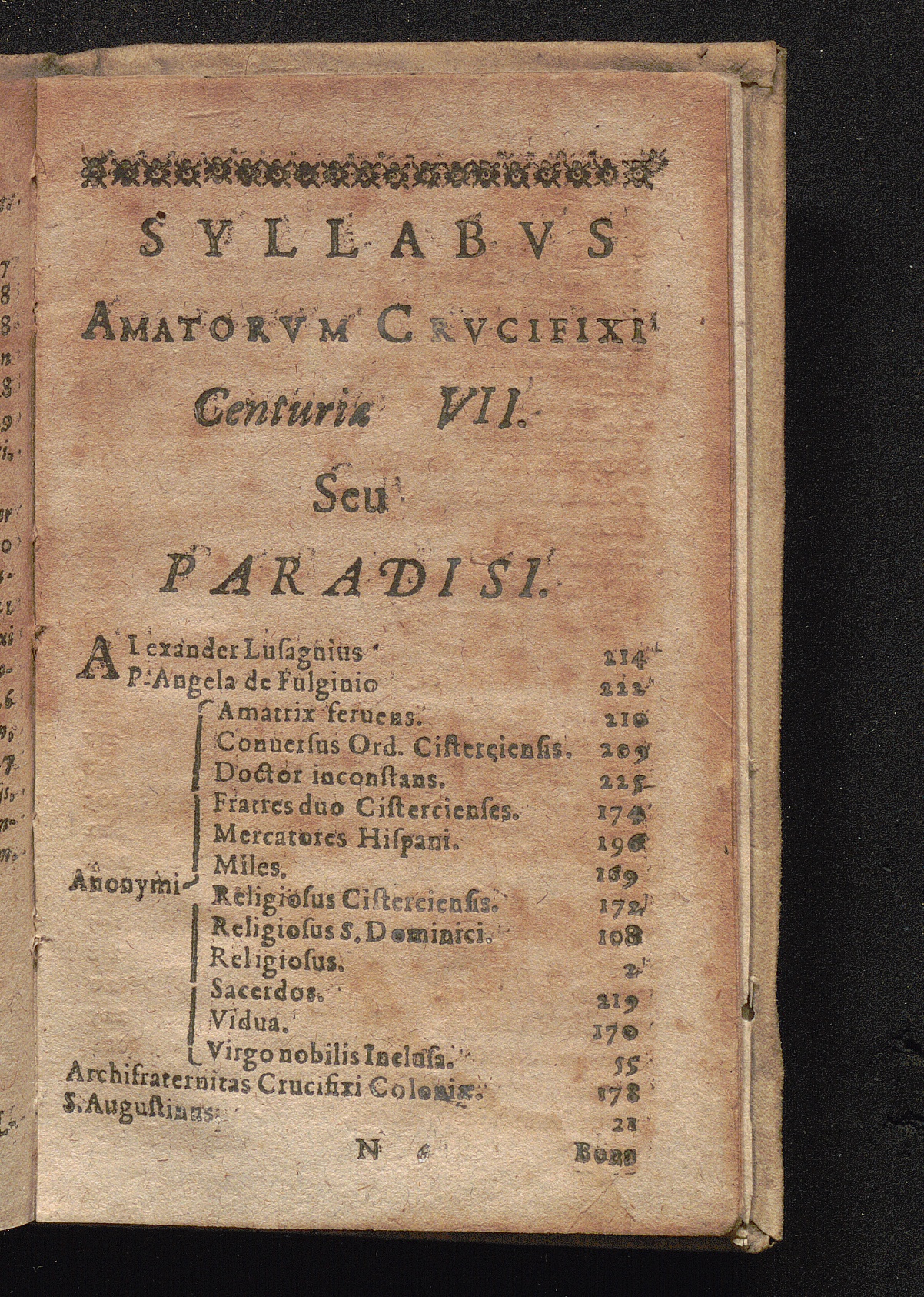 Syllabvs Amatorvm Crvcifixi Centuriæ VII. Seu Paradisi.