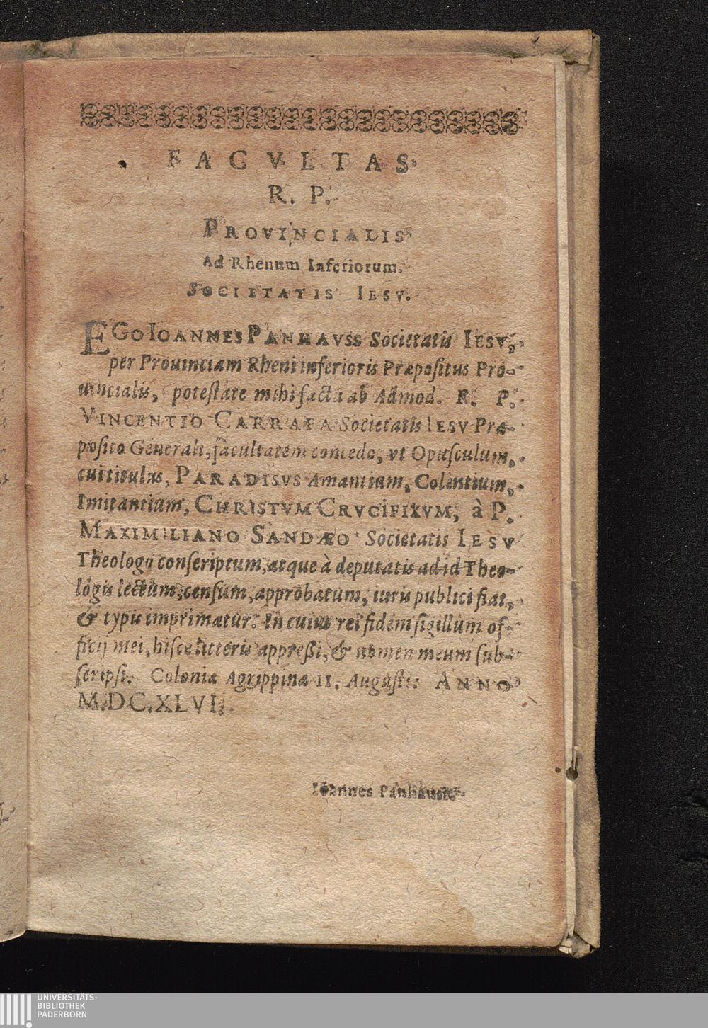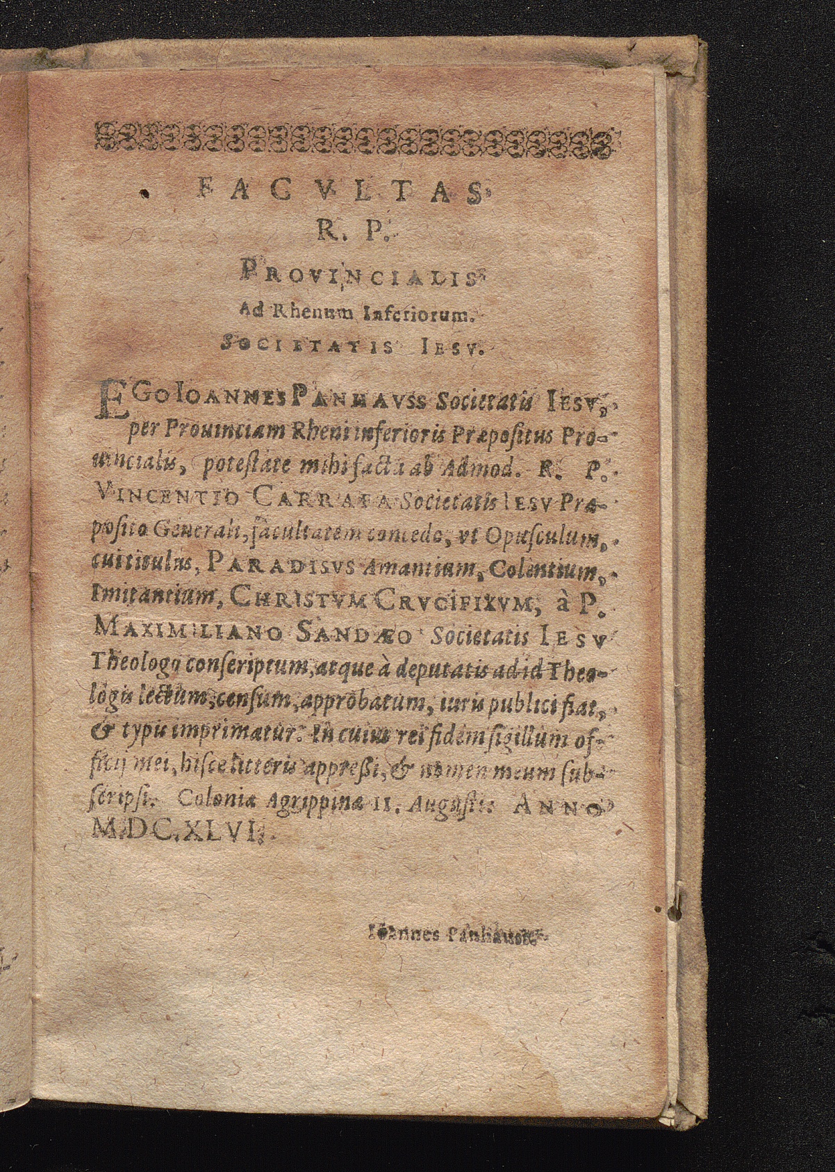 Facvltas R. P. Provincalis Ad Rhenum Inferiorum. Societatis Iesv.