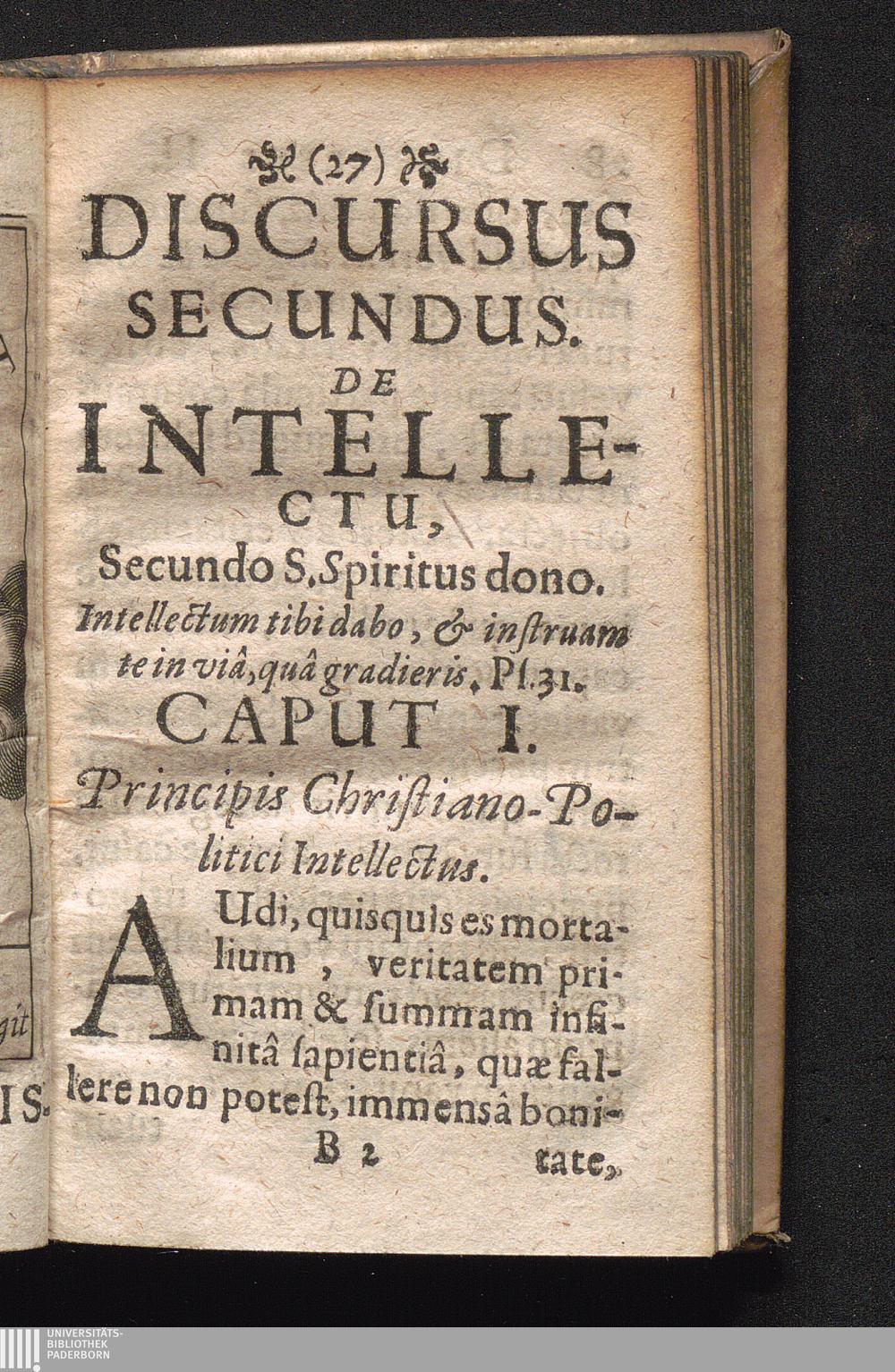 Discursus Secundus. De Intellectu, Secundo S. Spiritus dono. Intellectum tibi dabo,[...]