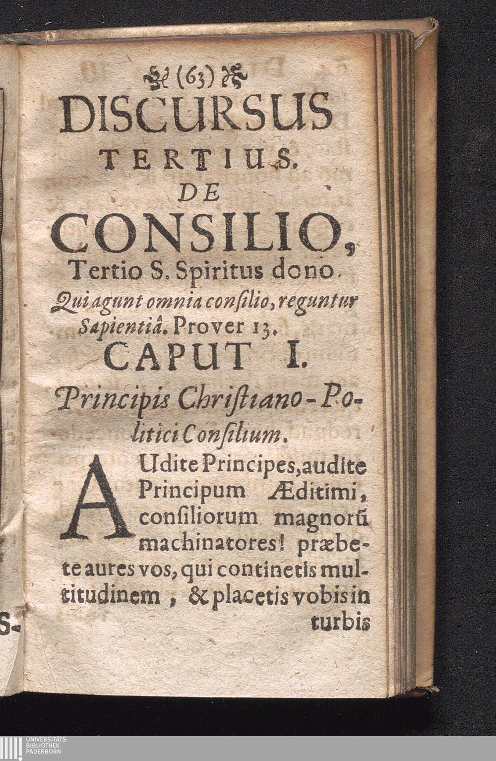 Discursus Tertius. De Consilio, Tertio Spiritus dono. Qui agunt omnia consilio, reguntur[...]