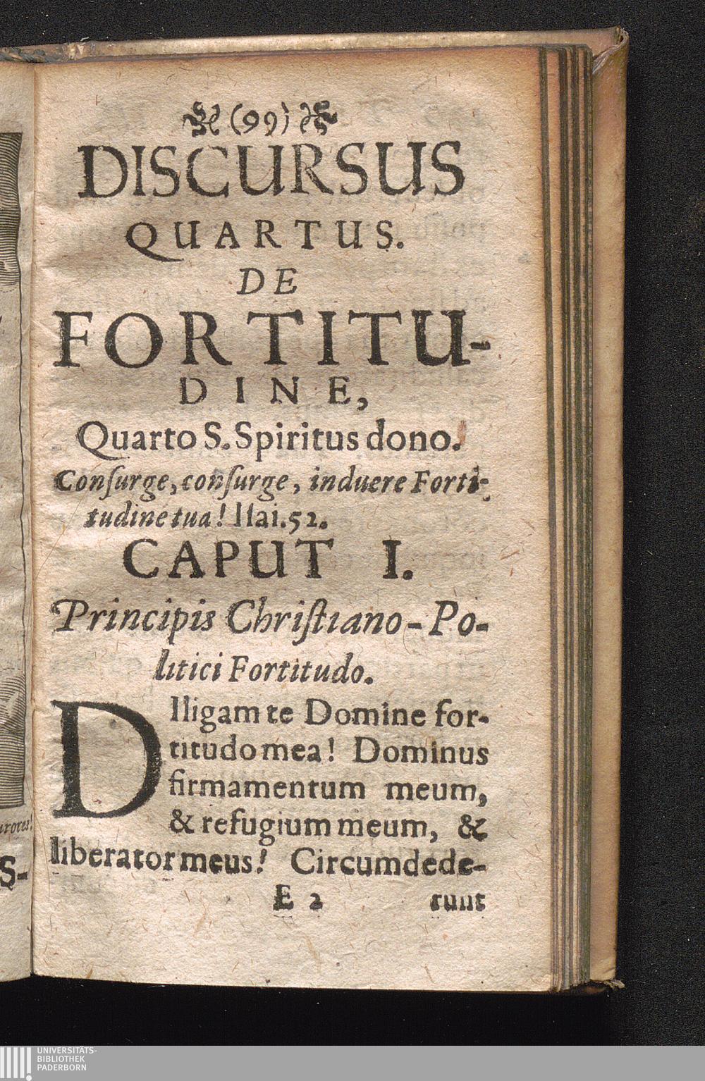 Discursus Quartus. De Fortitudine, Quarto S. Spiritus dono. Consurge, consurge, induere[...]