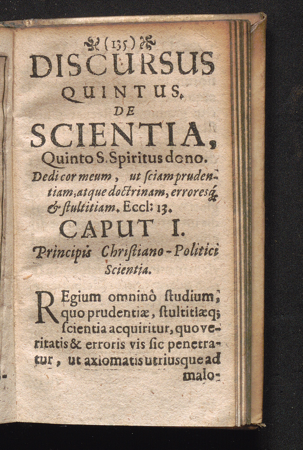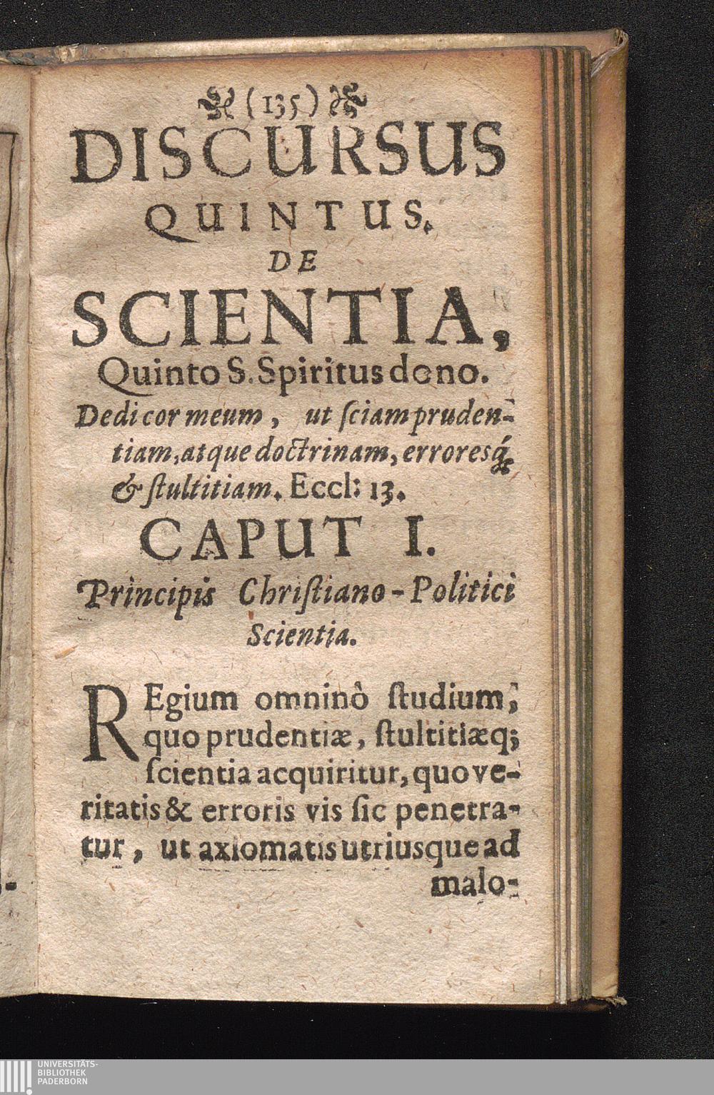 Discursus Quintus. De Scientia, Quinto S. Spiritus dono. Dedicor meum, ut sciam prudentiam,[...]