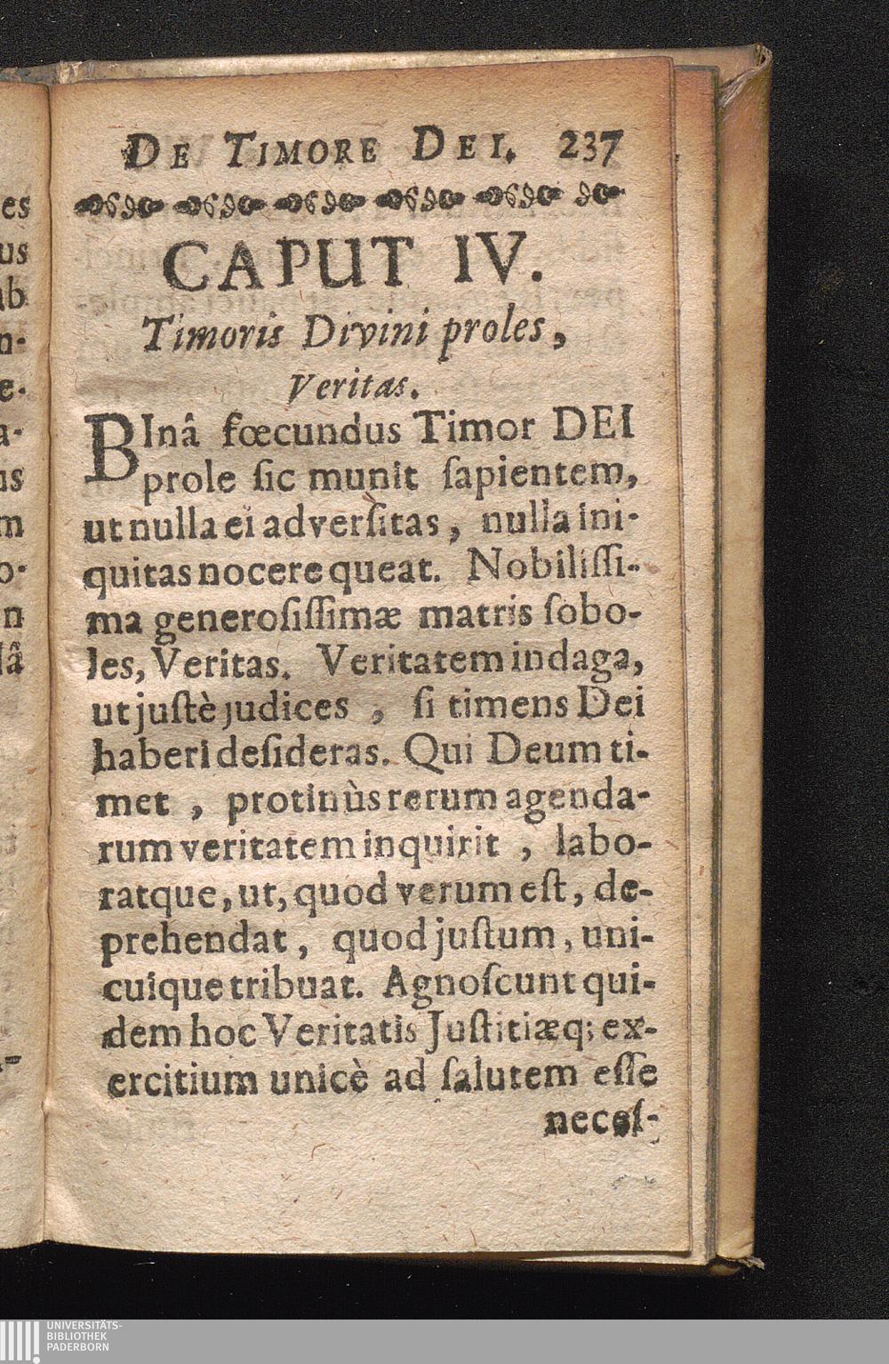 Caput IV. Timoris Divini proles, Veritas.