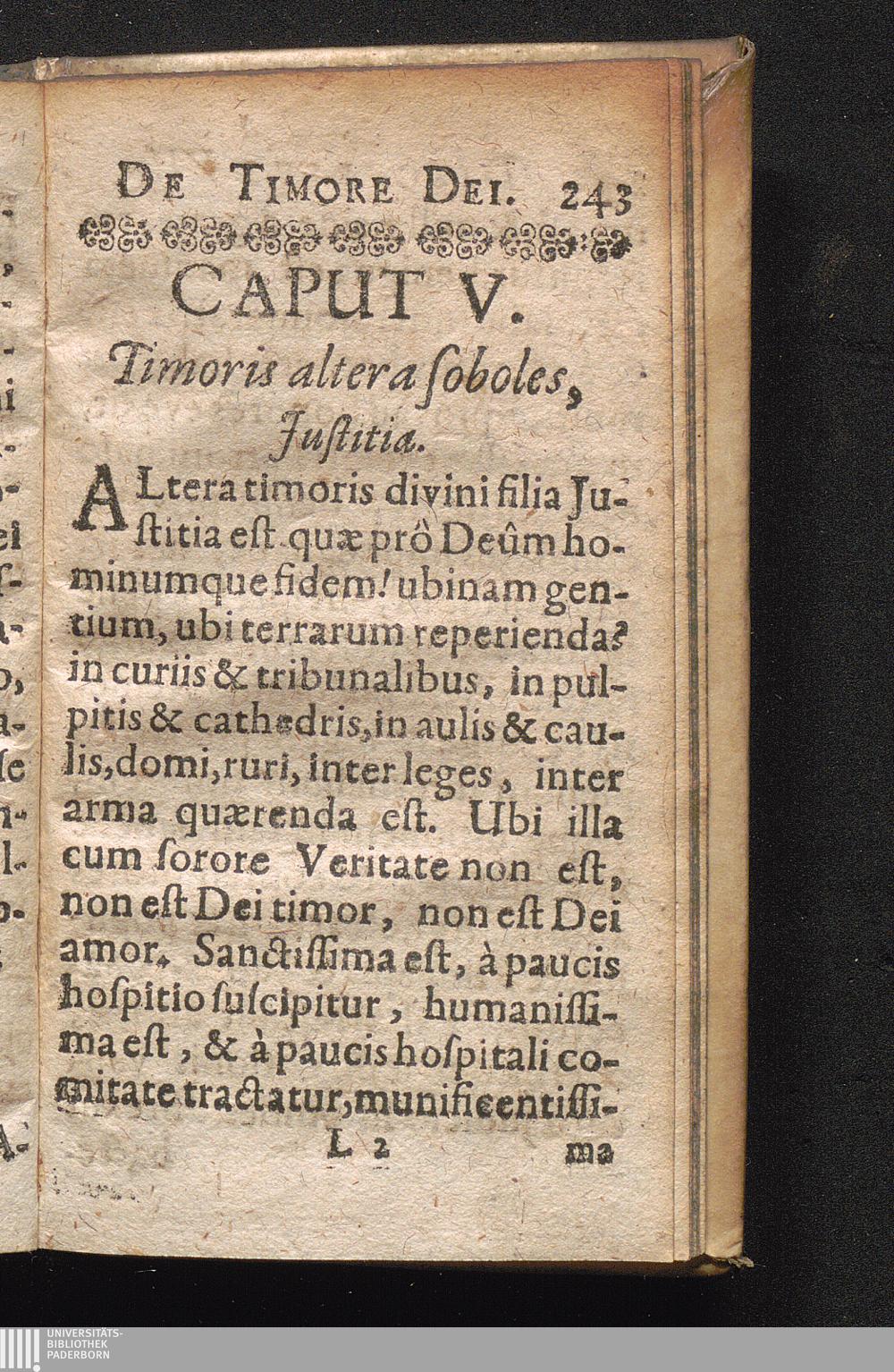 Caput V. Timoris altera soboles, Justitia.