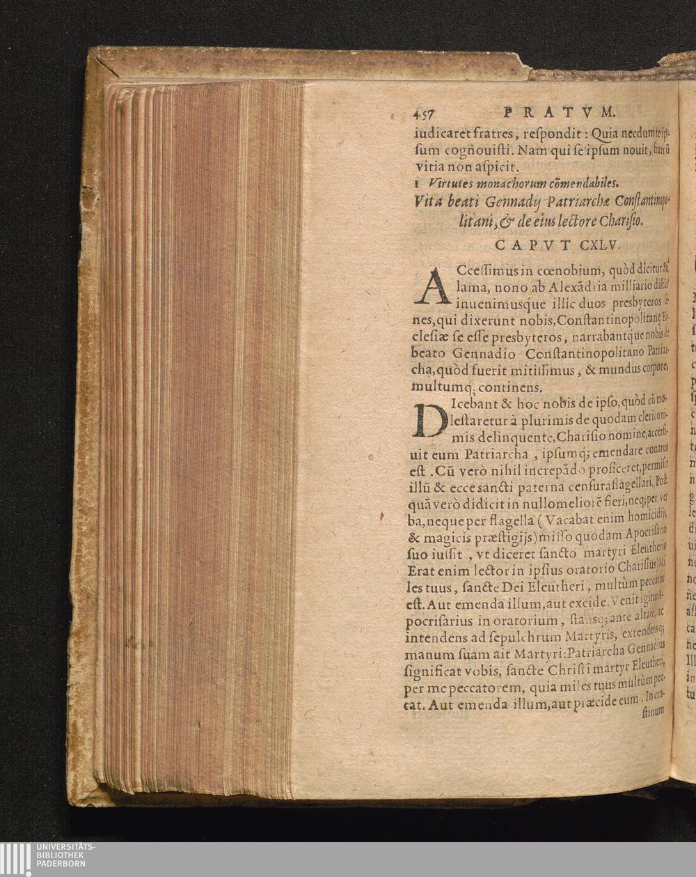 Vita beati Gennadij Patriarchæ Constantinopolitani, & de eius lectore Charisio. Capvt[...]