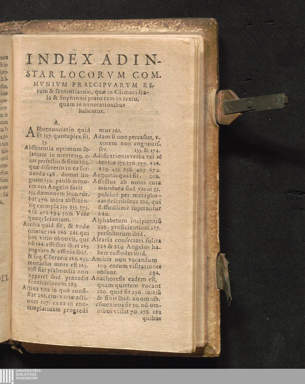 Index Ad Instar Locorvm Commvnivm Praecipvarvm Rerum & sententiarum, quæ in Climaci[...]