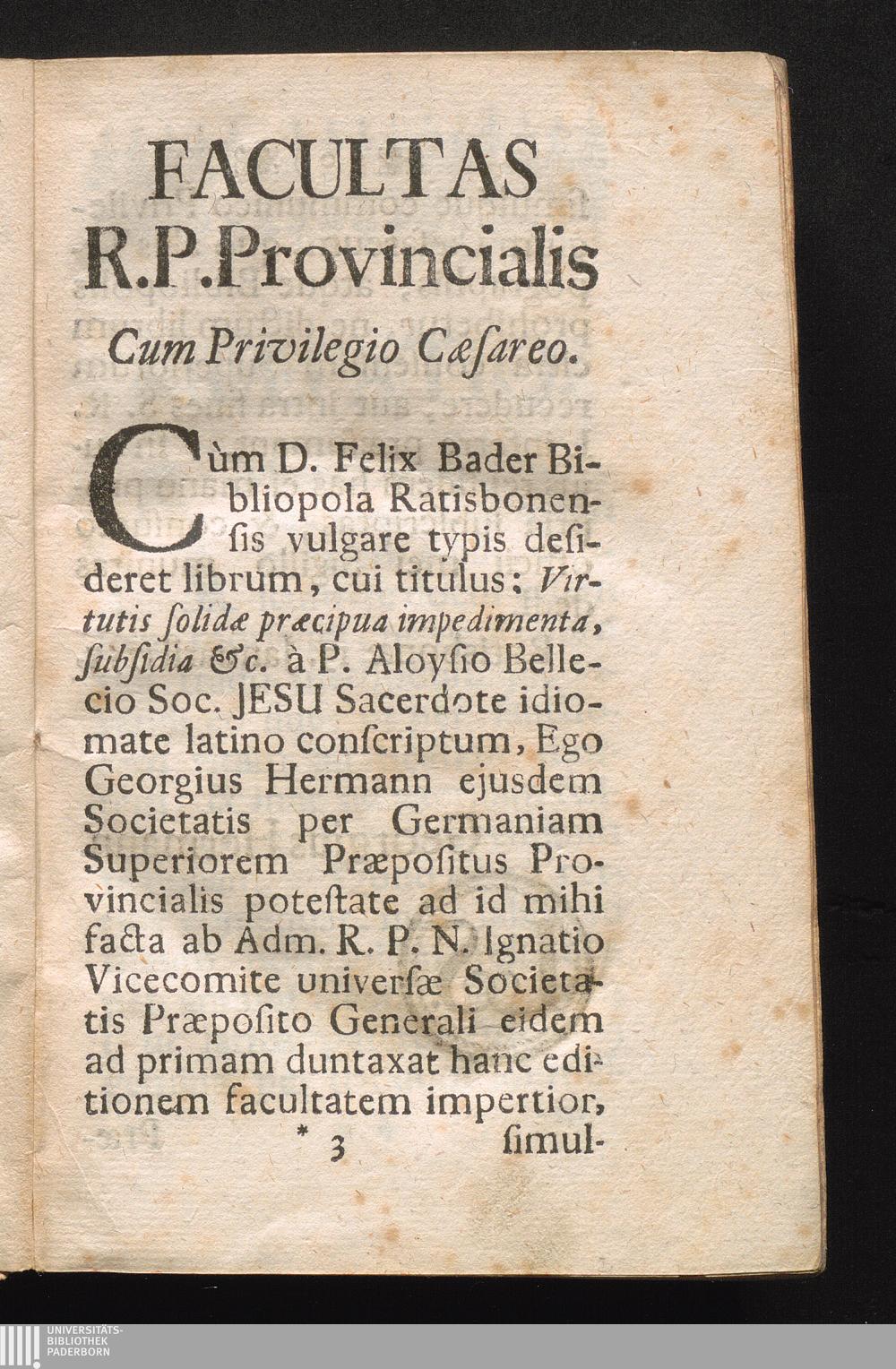 Facultas R.P. Provincialis Cum Privilegio Cæsareo.