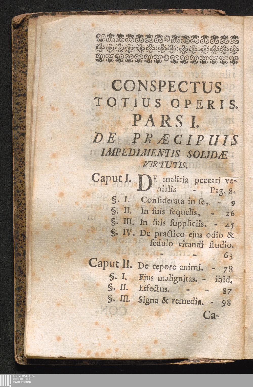 Pars Prima (1755) Impedimenta